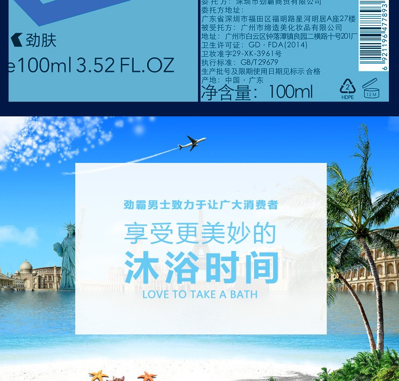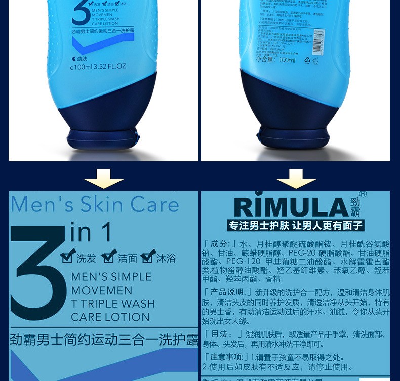 劲霸男士洗发洁面沐浴三合一洗护露护肤品沐浴露洗头水