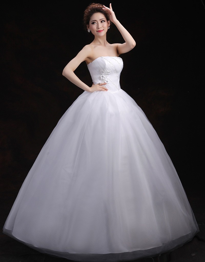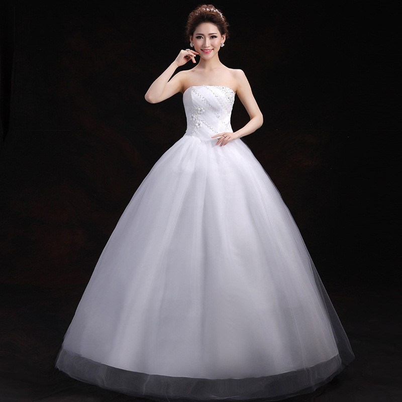 2017新款新娘韩版齐地显瘦抹胸修身绑带大码花朵婚纱T-16