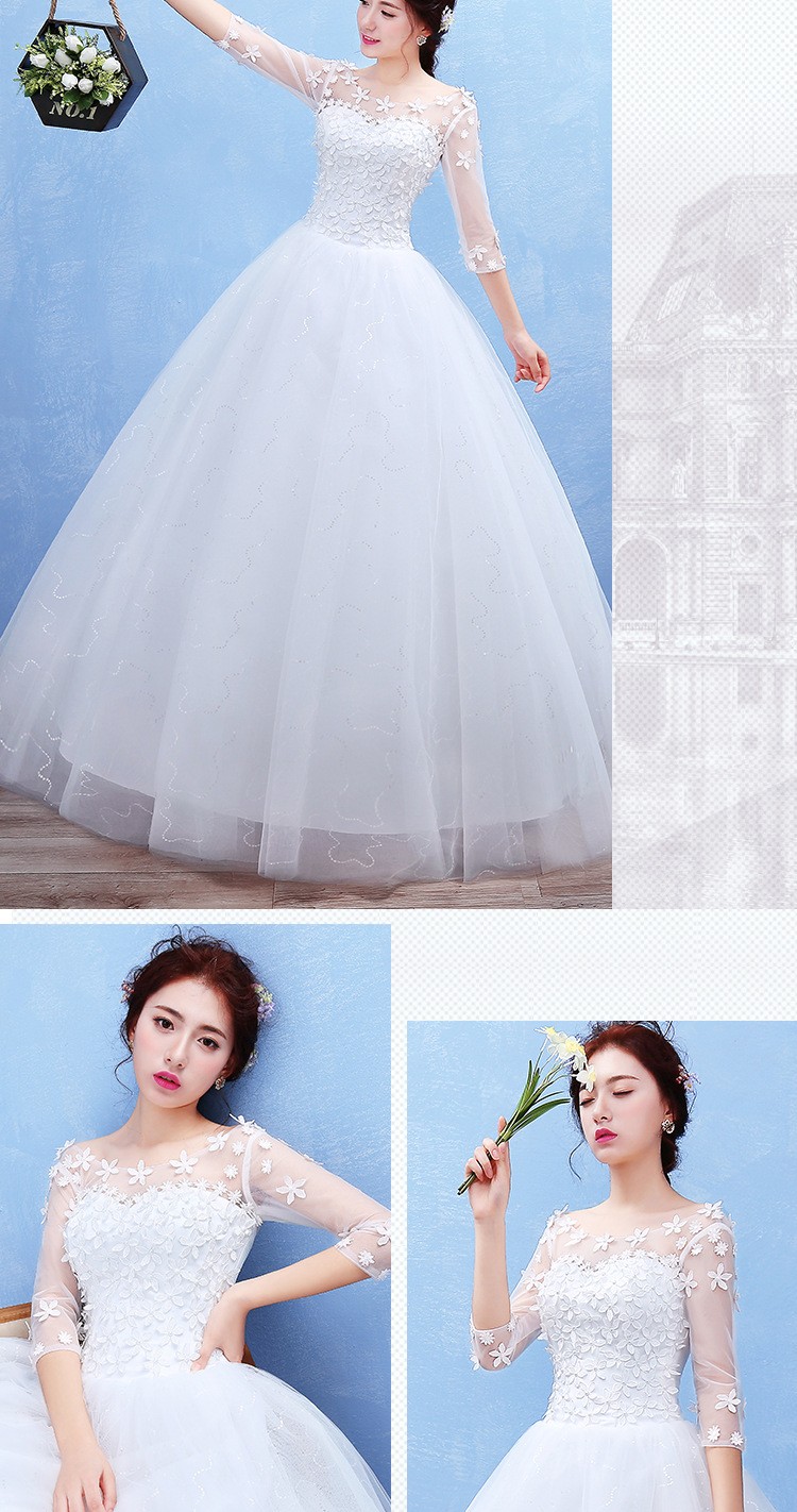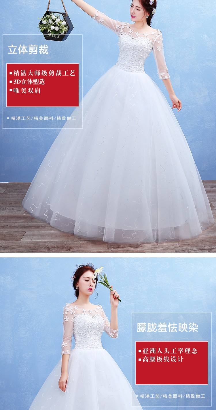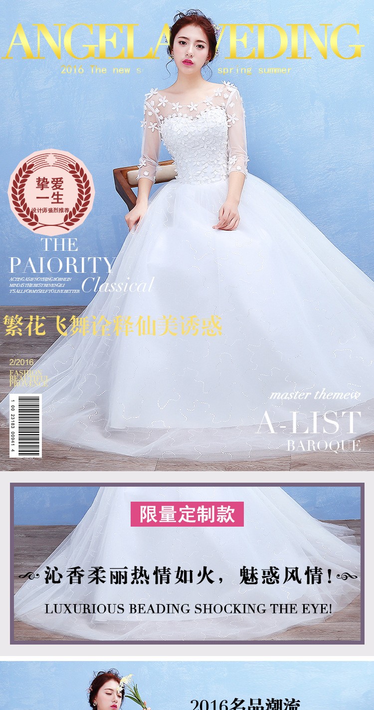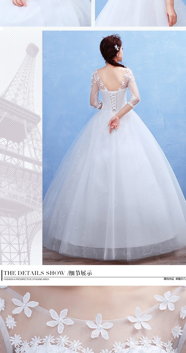 2017新款新娘蕾丝婚纱礼服 韩式 双肩一字肩蕾丝婚纱 T40