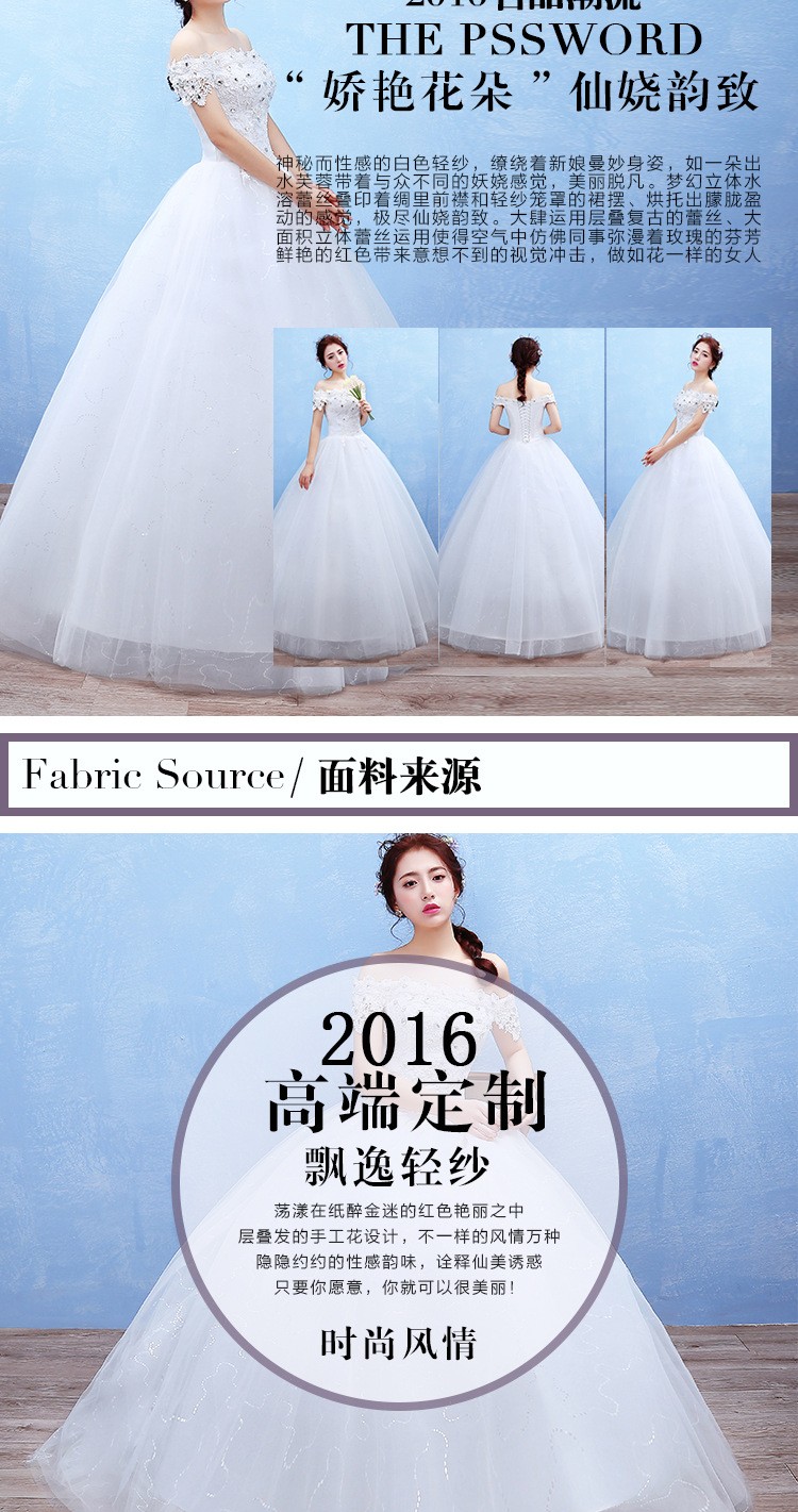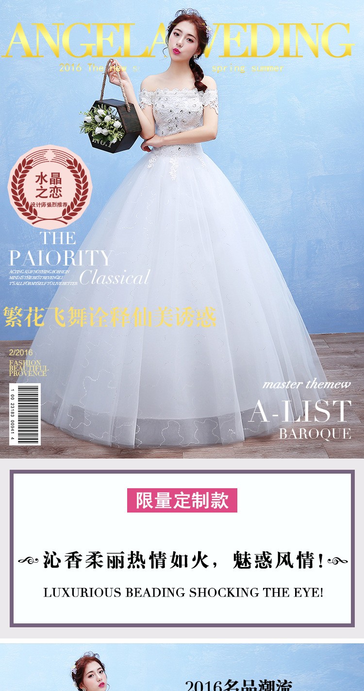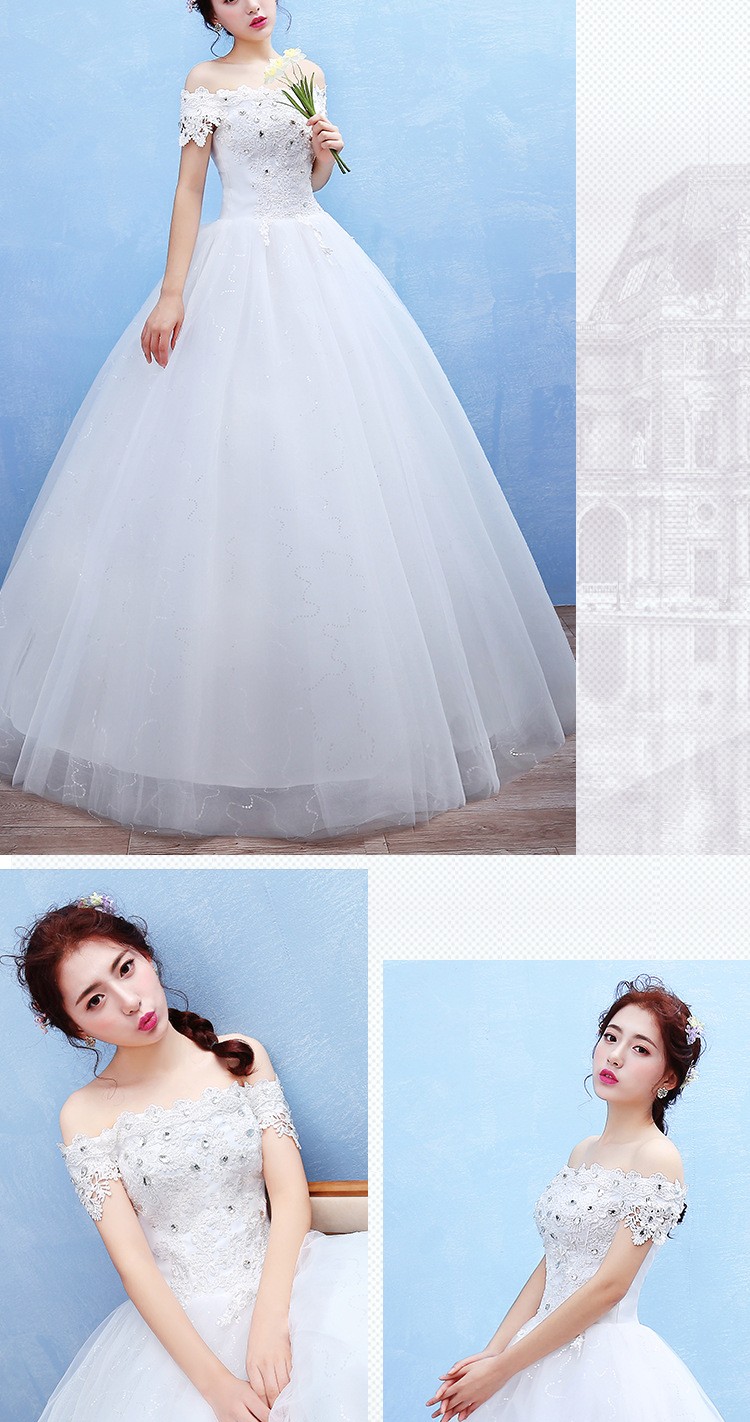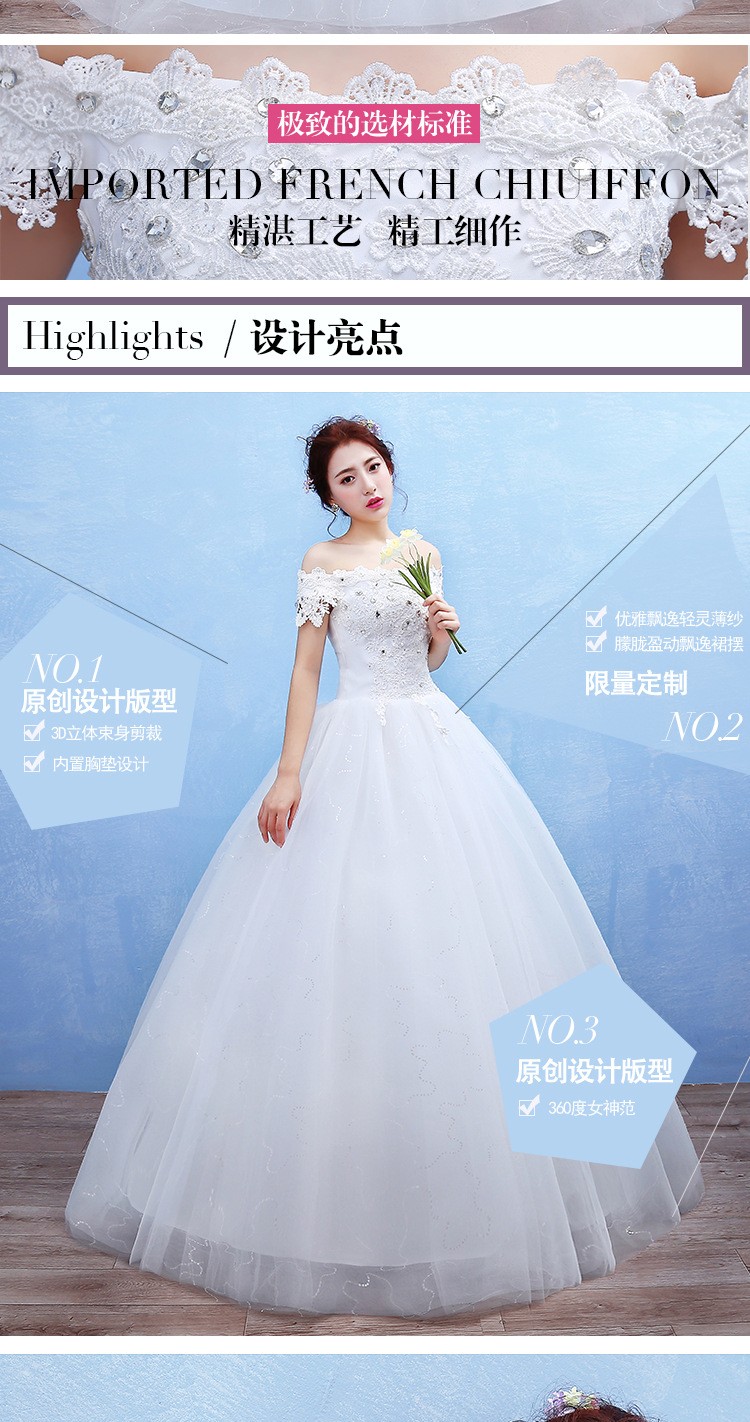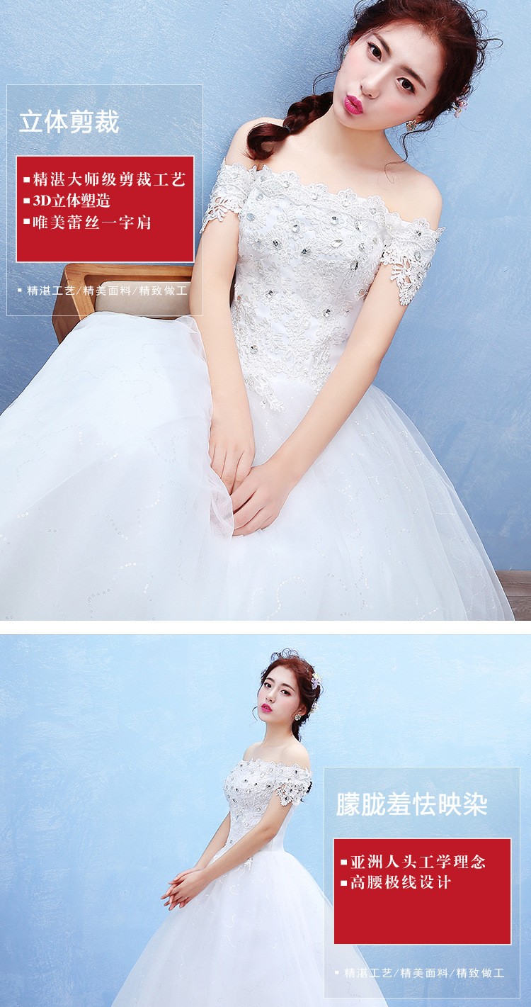 2017新款新娘蕾丝婚纱礼服 韩式 双肩一字肩蕾丝婚纱T42