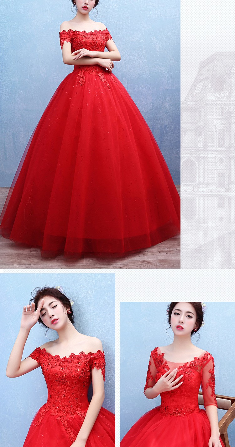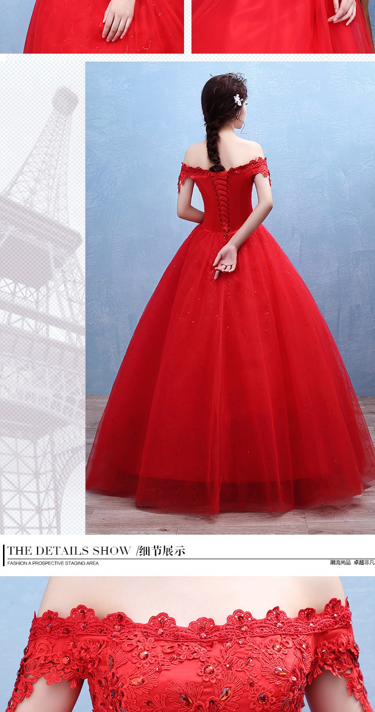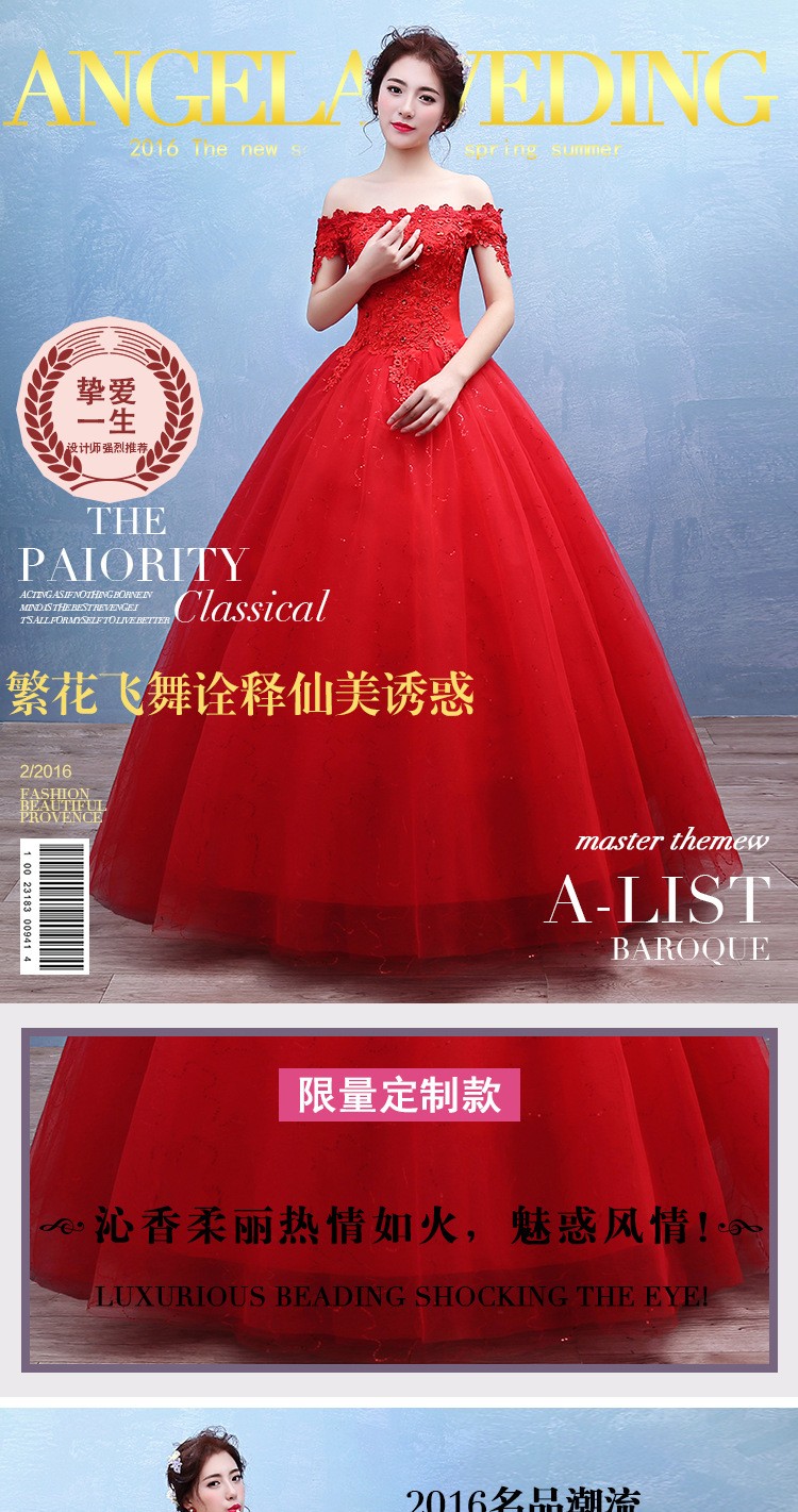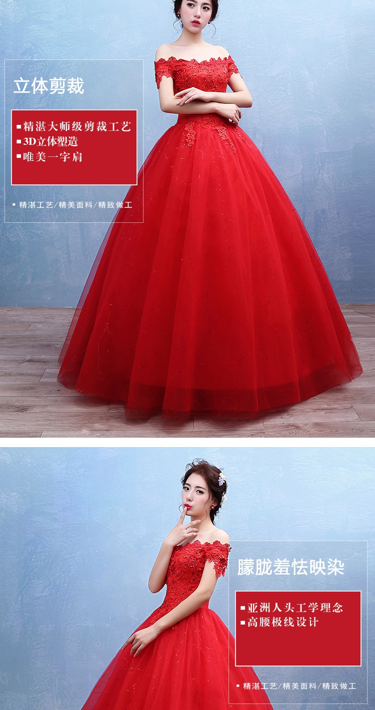 2017新款新娘蕾丝婚纱礼服 韩式 双肩一字肩蕾丝婚纱T42