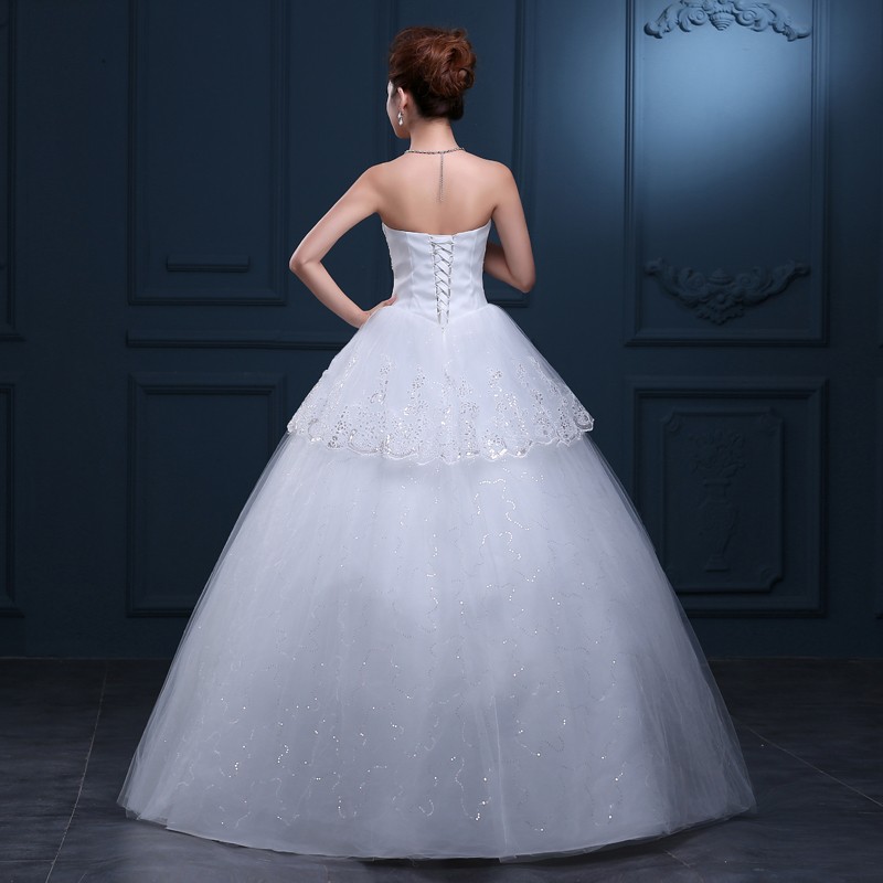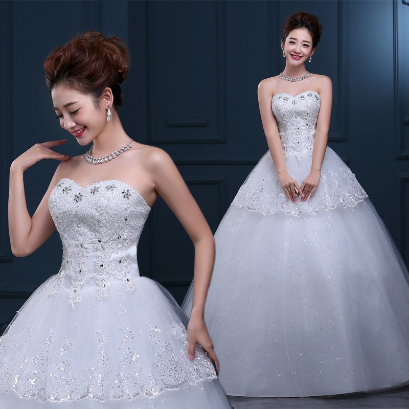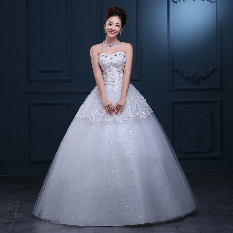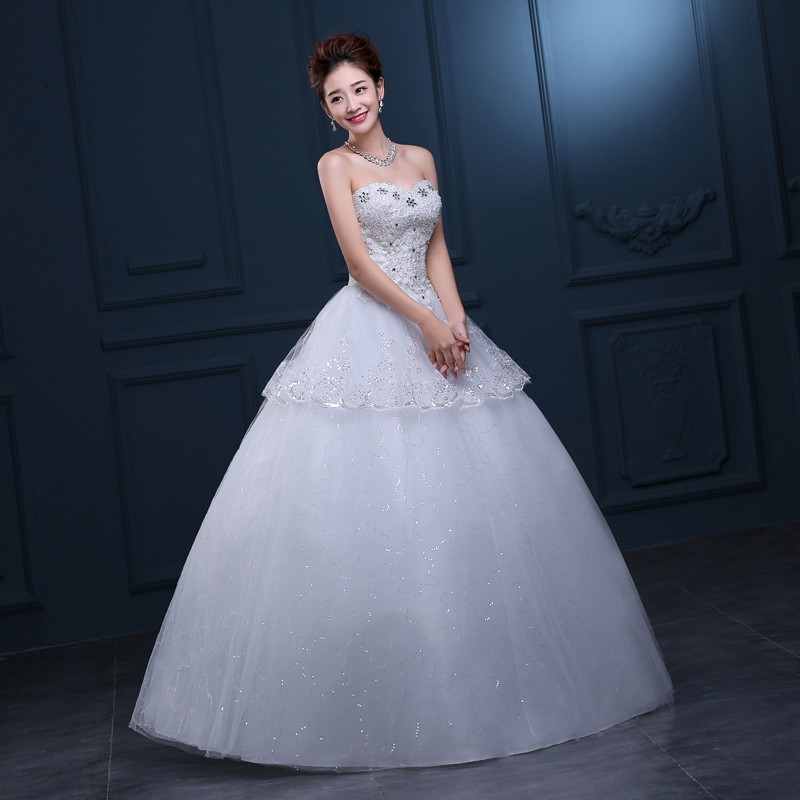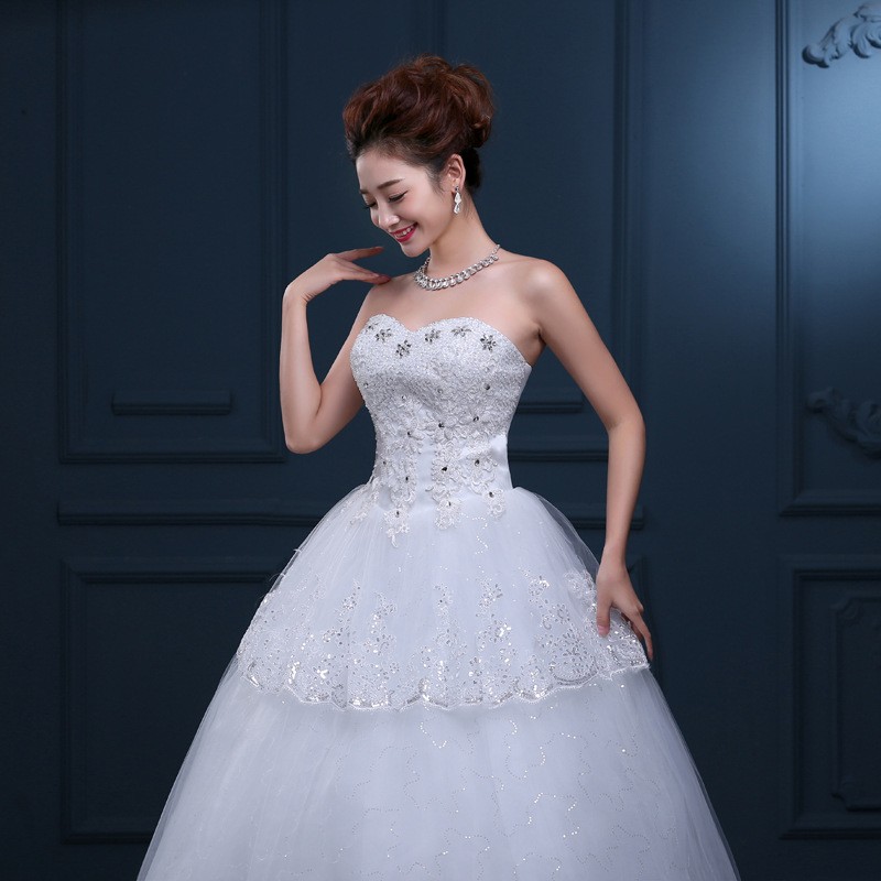 2017新款韩版婚纱 甜美公主抹胸齐地婚纱 车骨花边高档婚纱T31