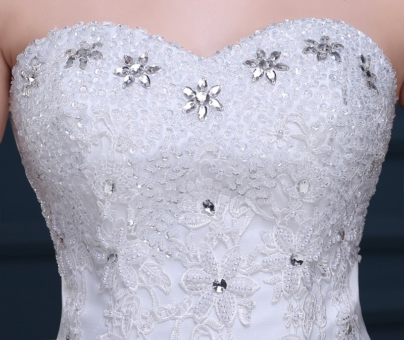 车骨花边高档婚纱 甜美公主抹胸齐地婚纱