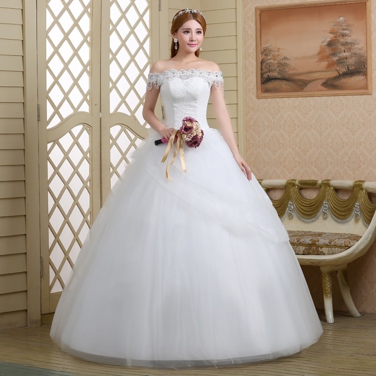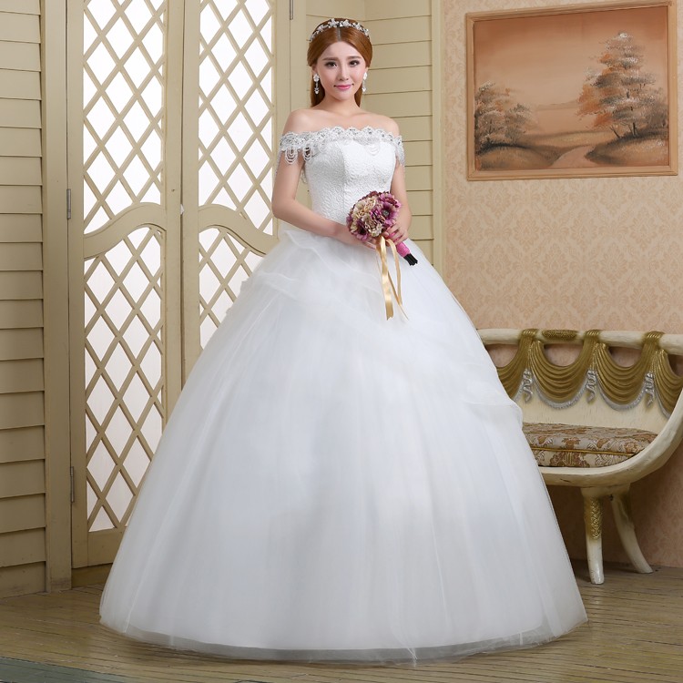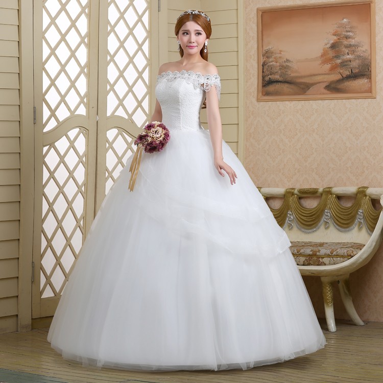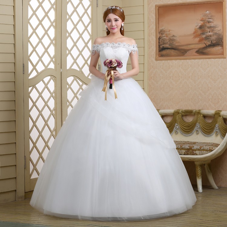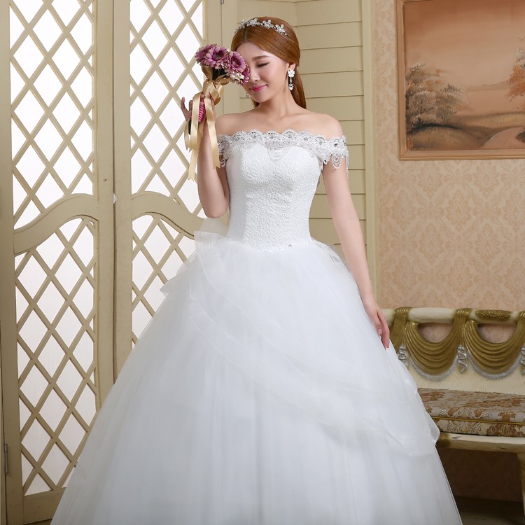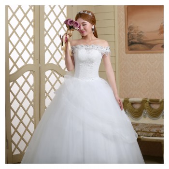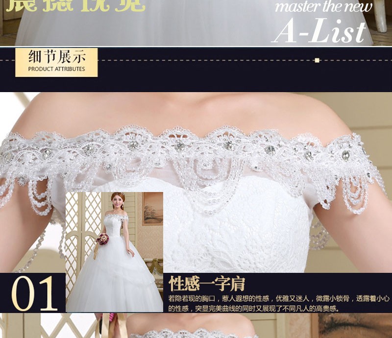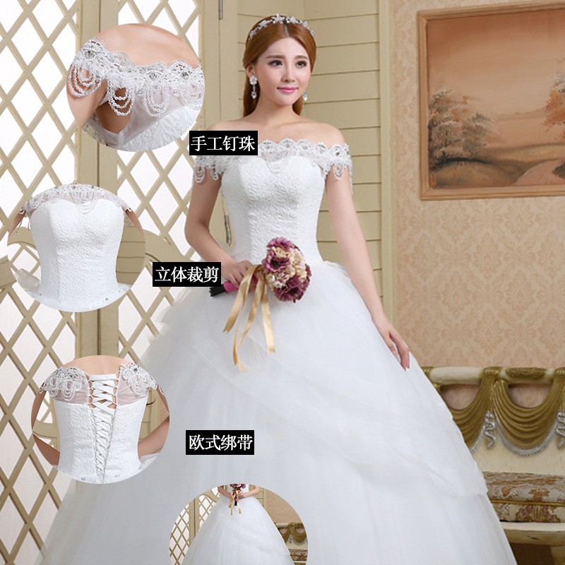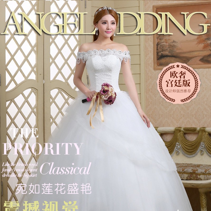 2017新款高档婚纱一字肩新娘 8568