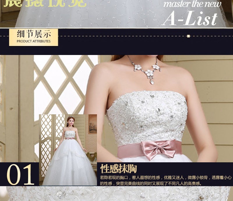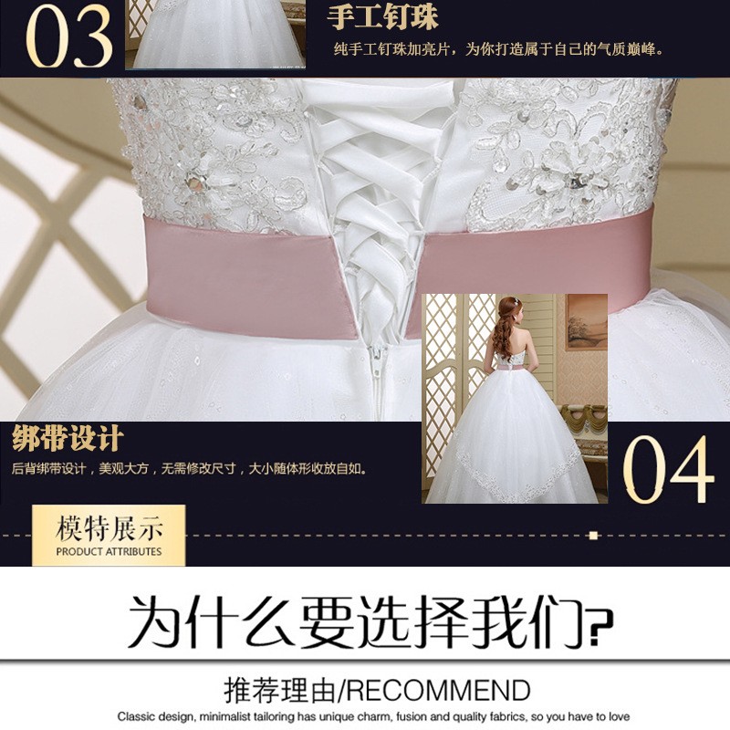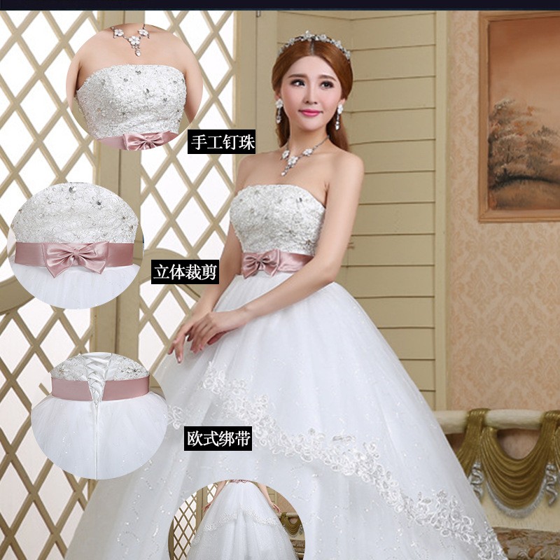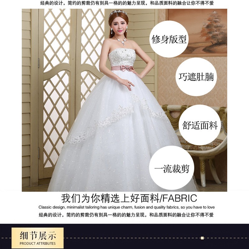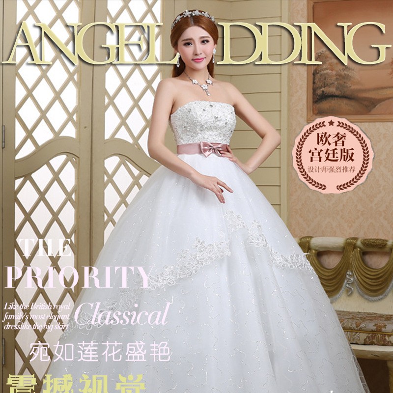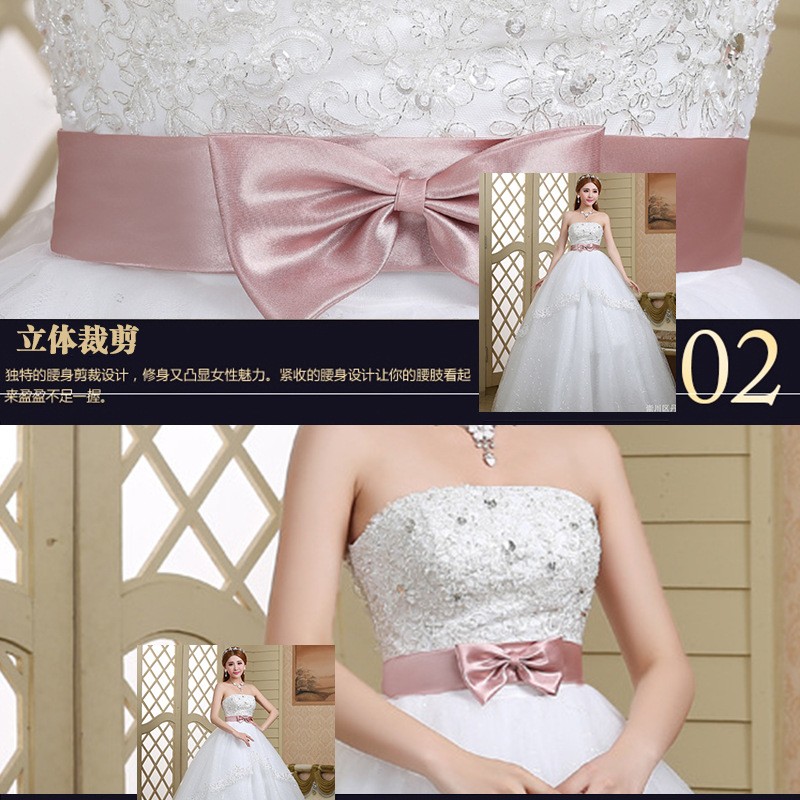 新款2017 蓬蓬裙 高档甜美韩版简约 齐地公主绑带大码结婚婚纱0078