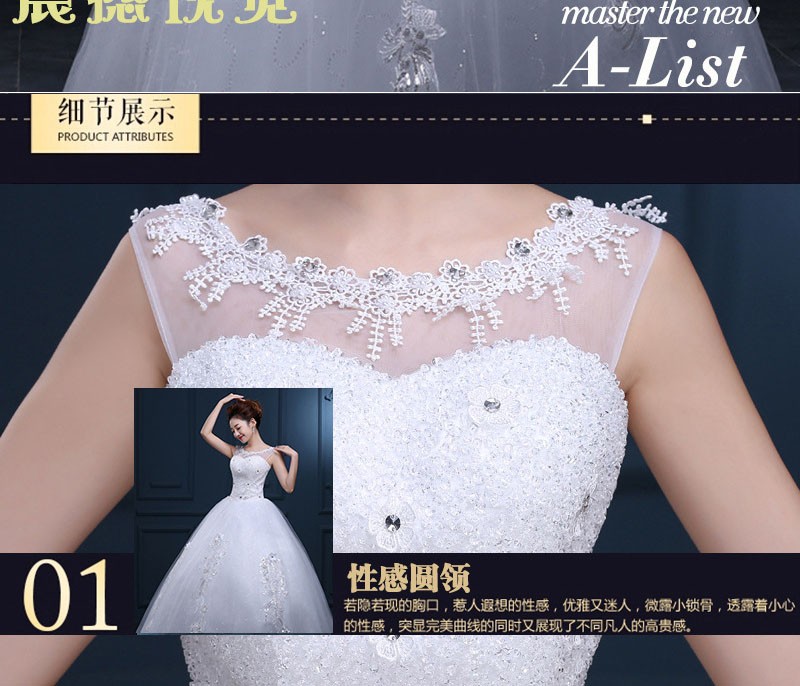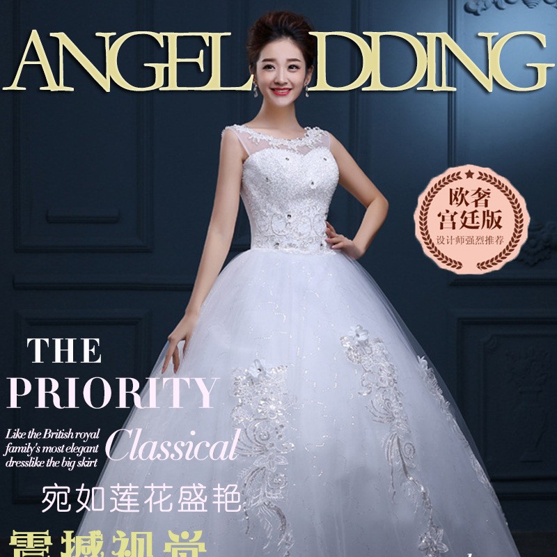婚纱礼服2017春季新款 双肩时尚蕾丝一字肩显瘦新娘结婚婚纱F39