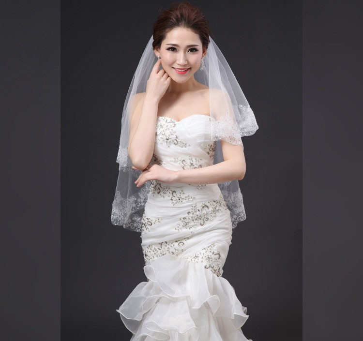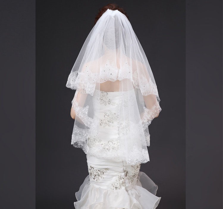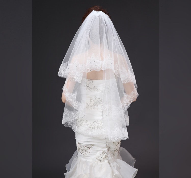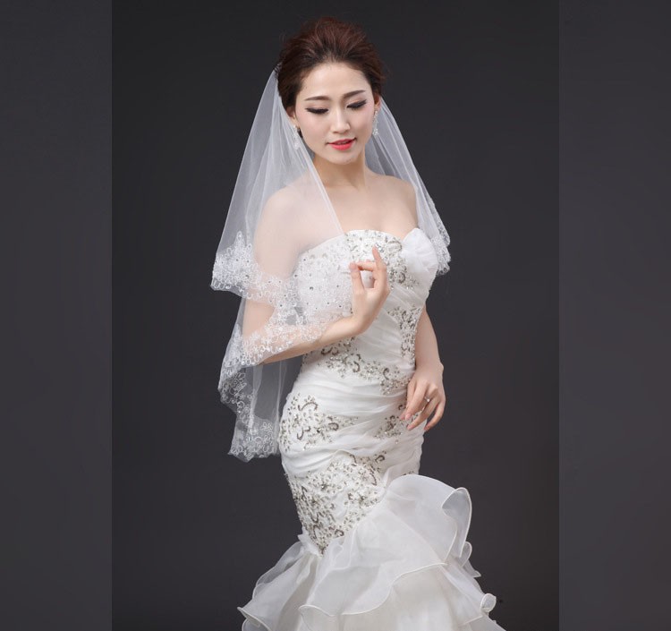 新娘结婚蕾丝镶钻婚纱高档头纱