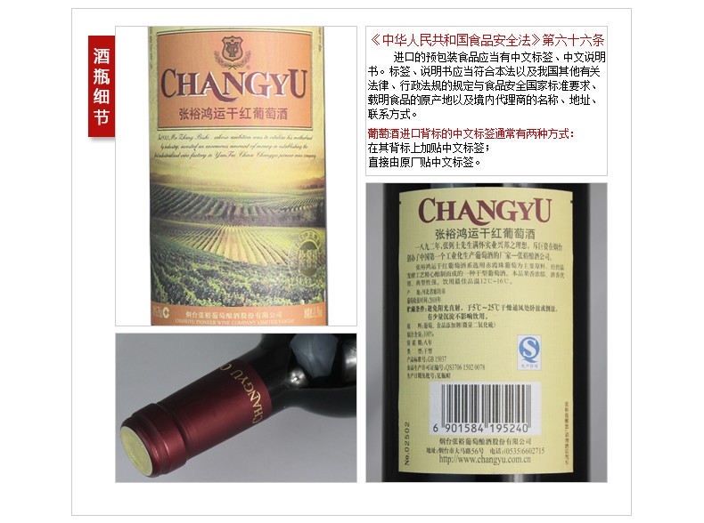 张裕鸿运干红葡萄酒1箱装 红葡萄酒 750ml 1箱6瓶