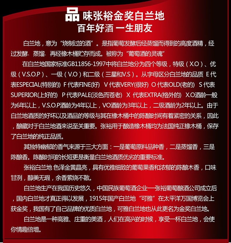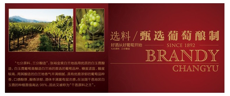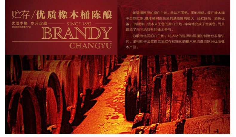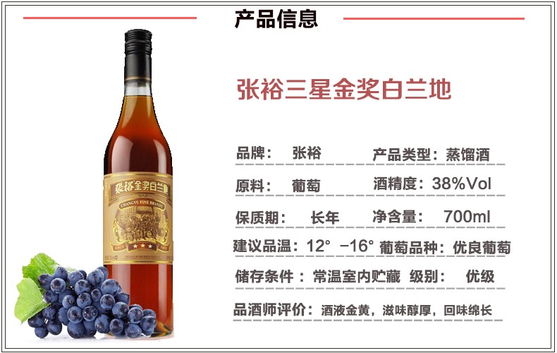 张裕白兰地张裕三星金奖白兰地38度白兰地洋酒果酒700ml*6 1箱装