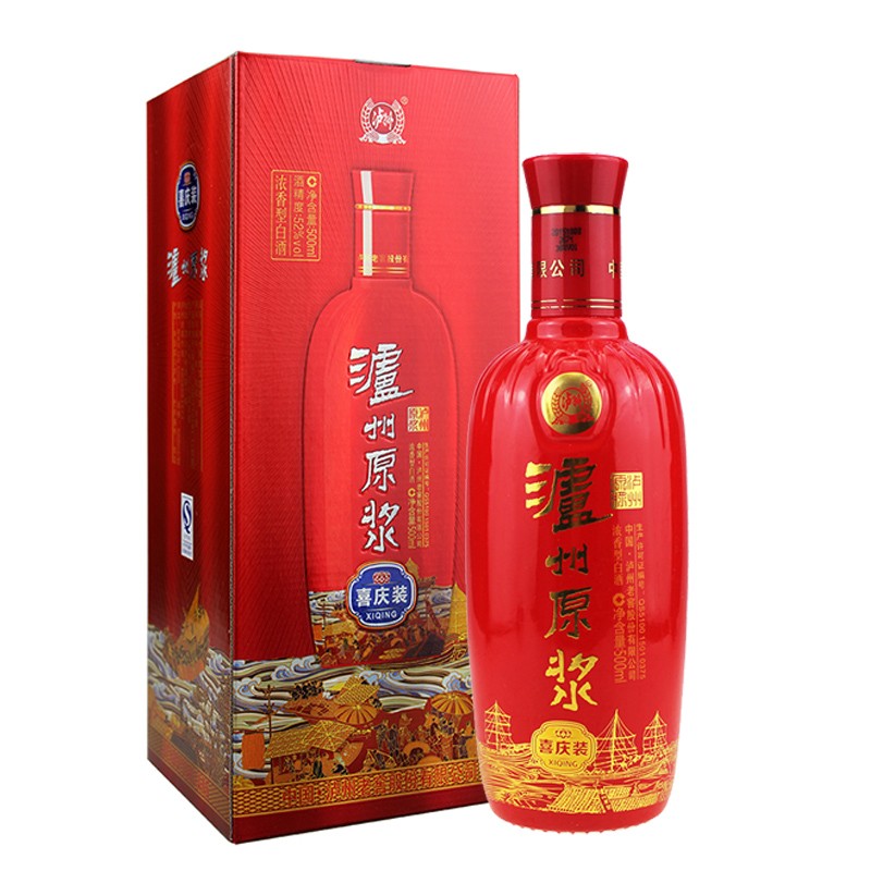 泸州原浆喜庆装52度高度浓香型白酒 500mL*6