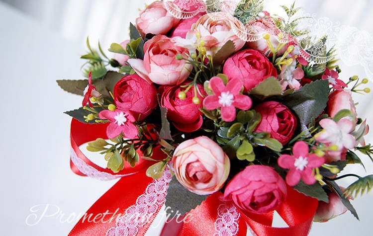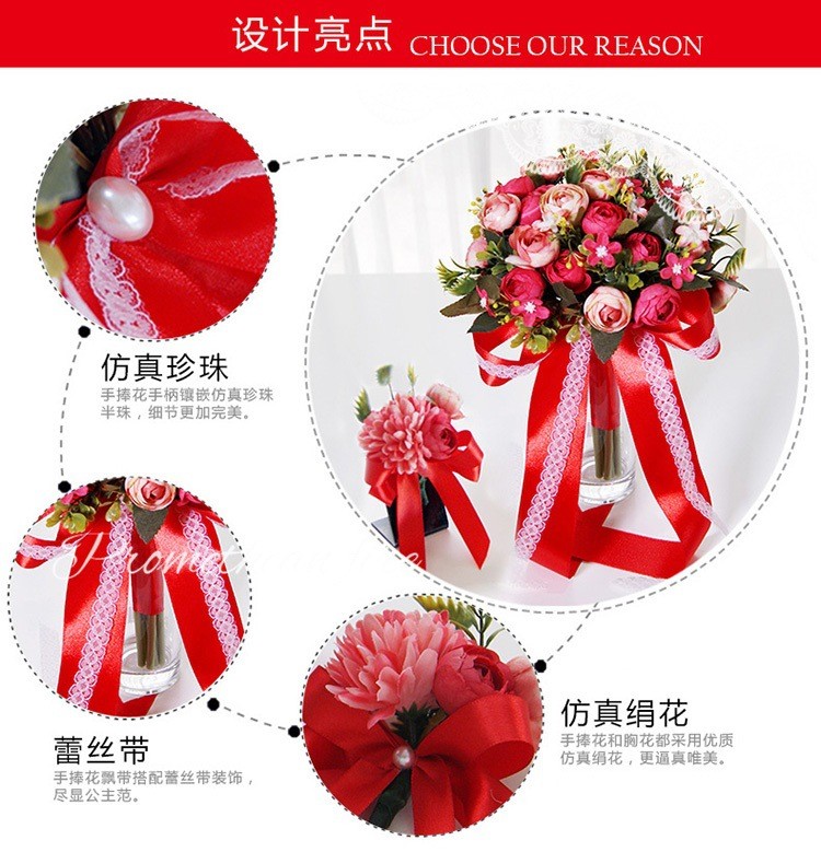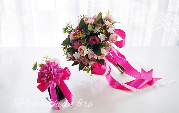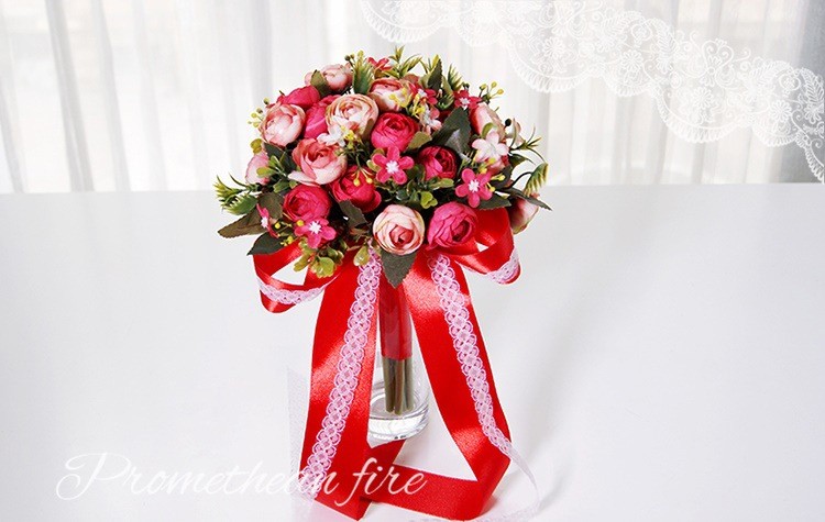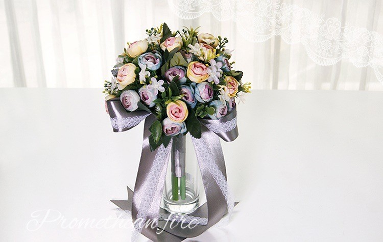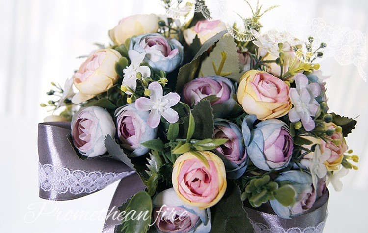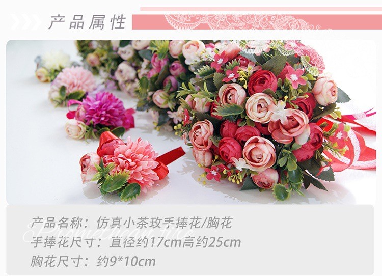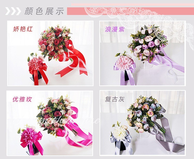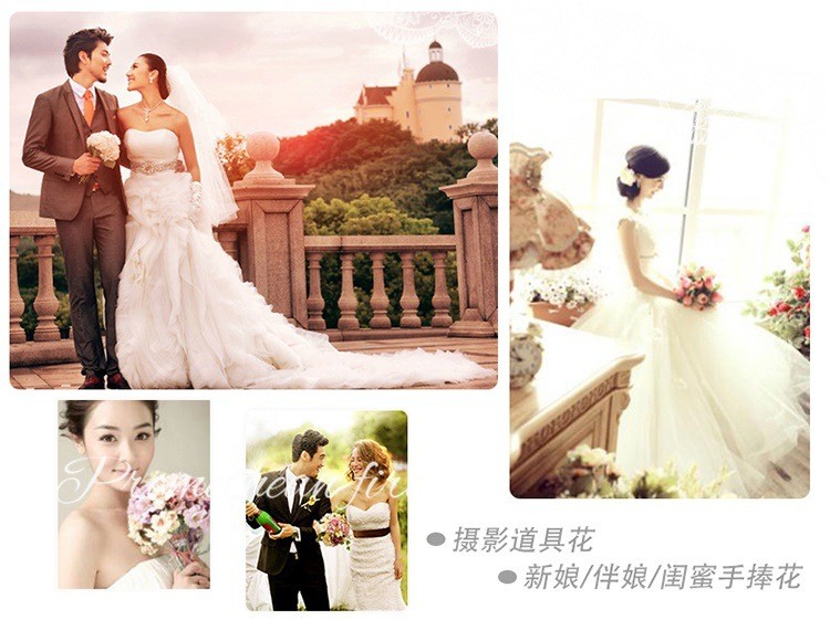 欧式婚礼仿真茶玫新娘手捧花婚纱影楼花球多色闺蜜手花球