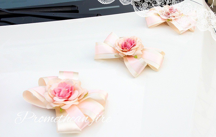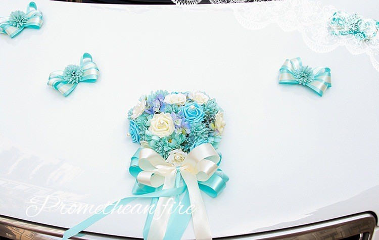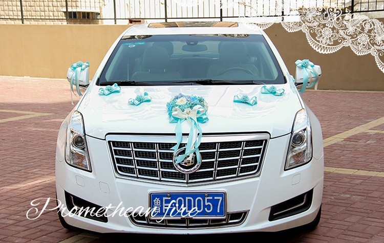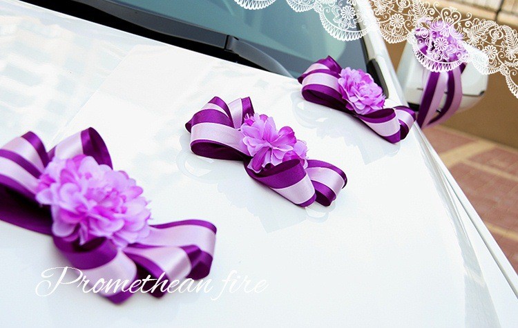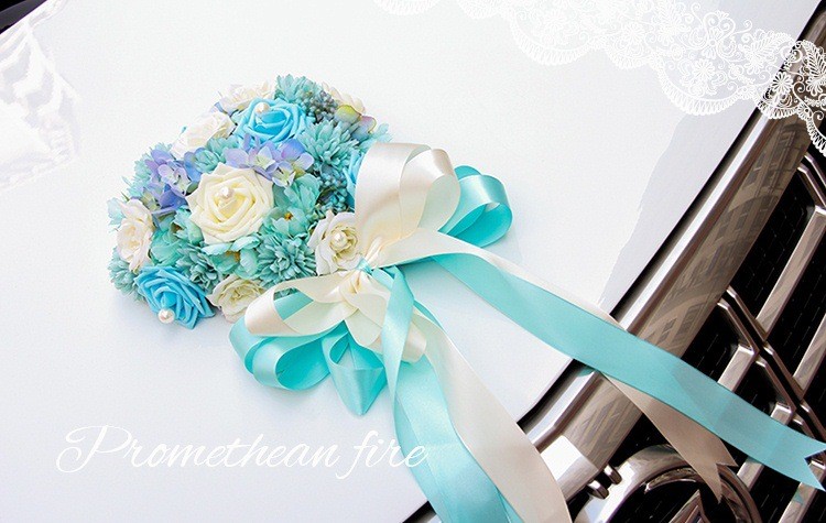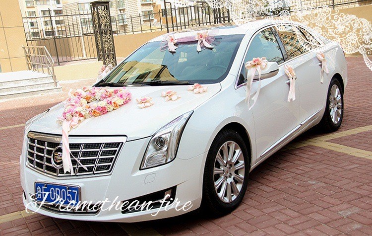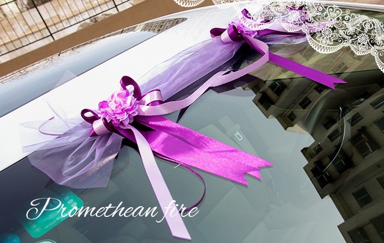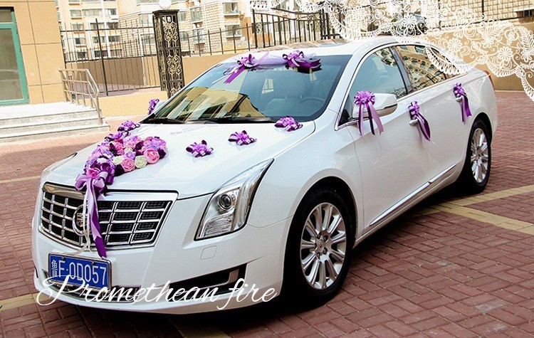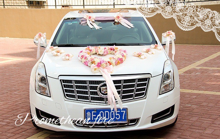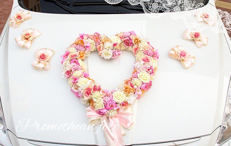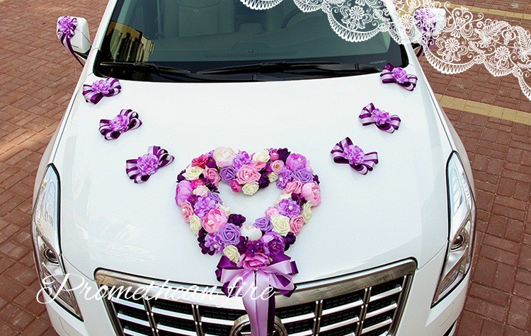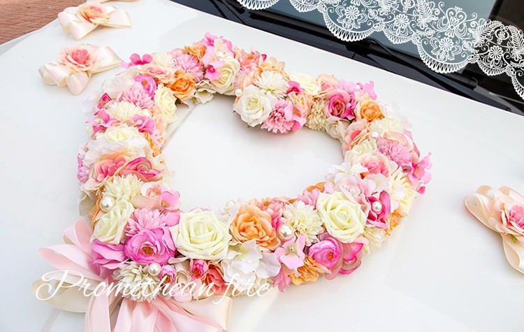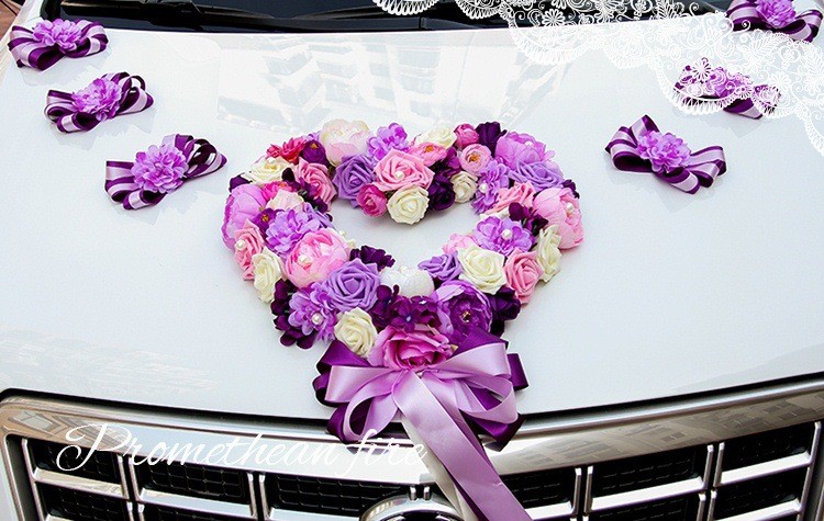 韩式主题婚礼仿真花心形结婚车装饰粉/紫/蓝色多尺寸新娘花车装扮