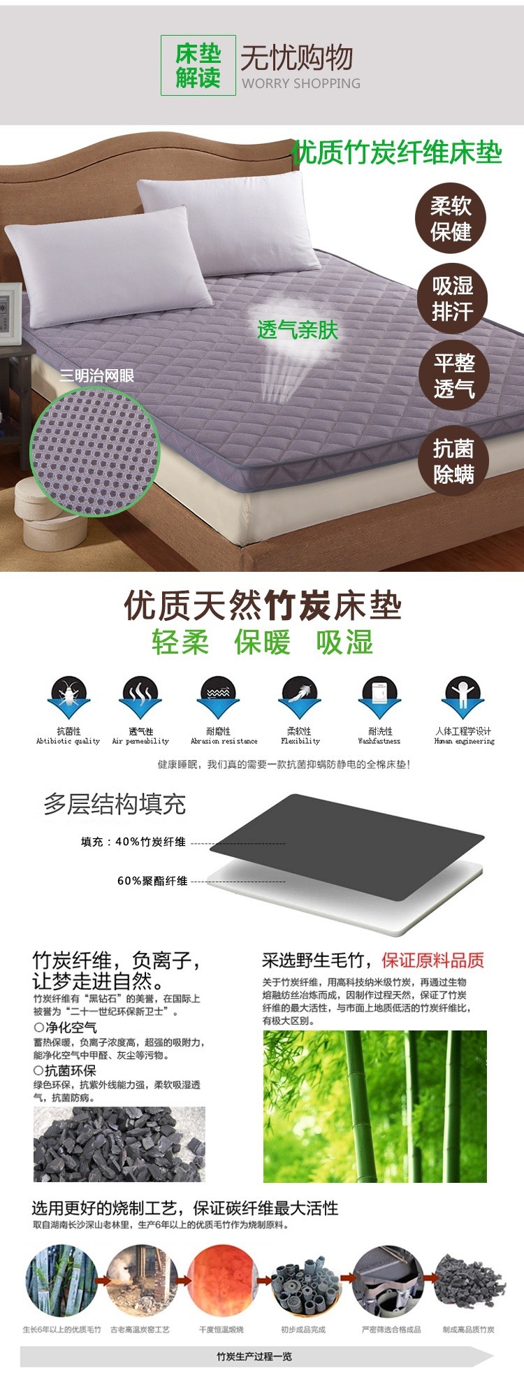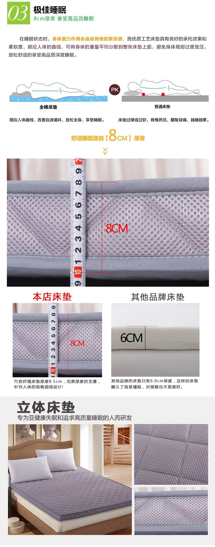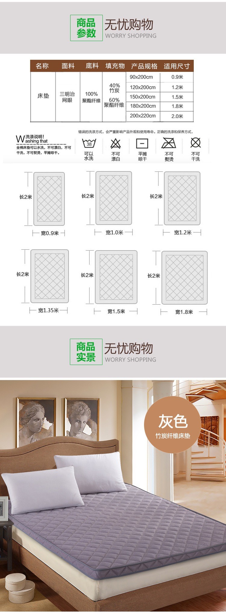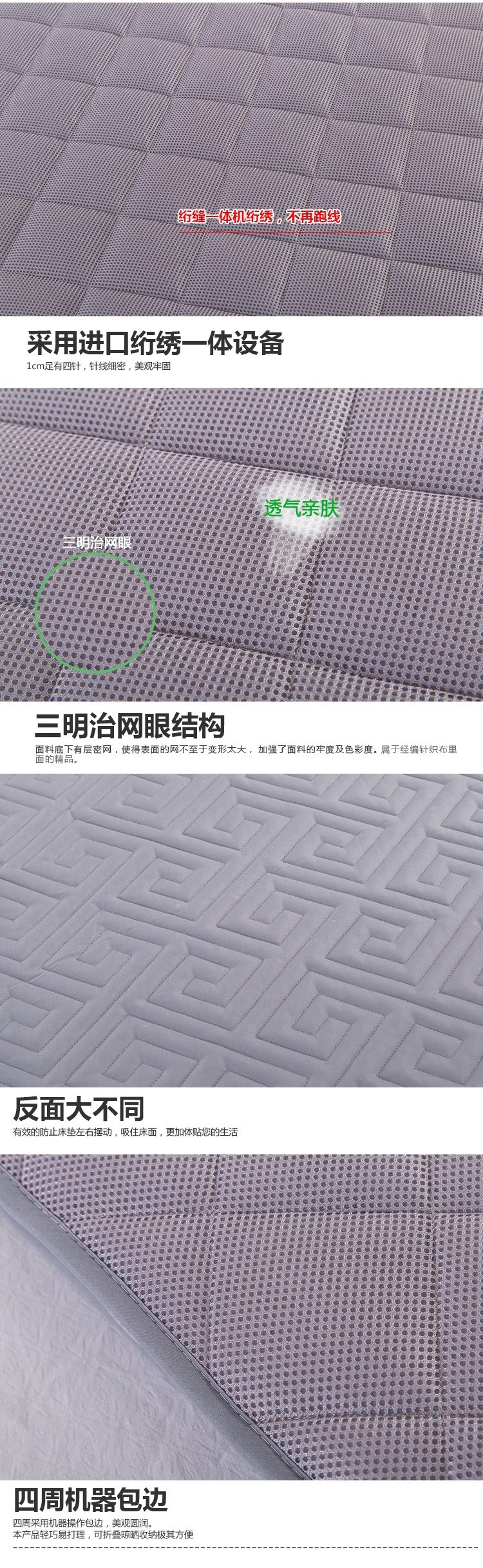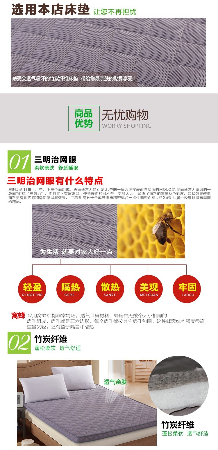 2017新款竹炭透气床垫三明治网眼立体床垫