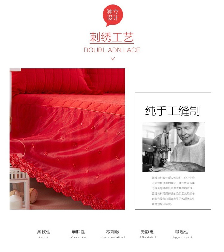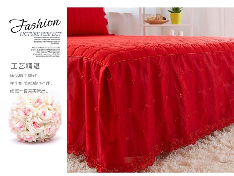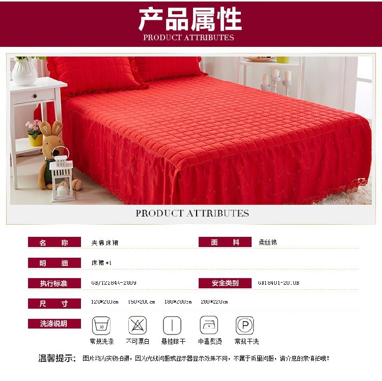婚庆夹棉床裙床罩单件加棉床套加厚床单席梦思保护套
