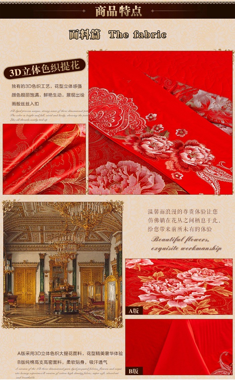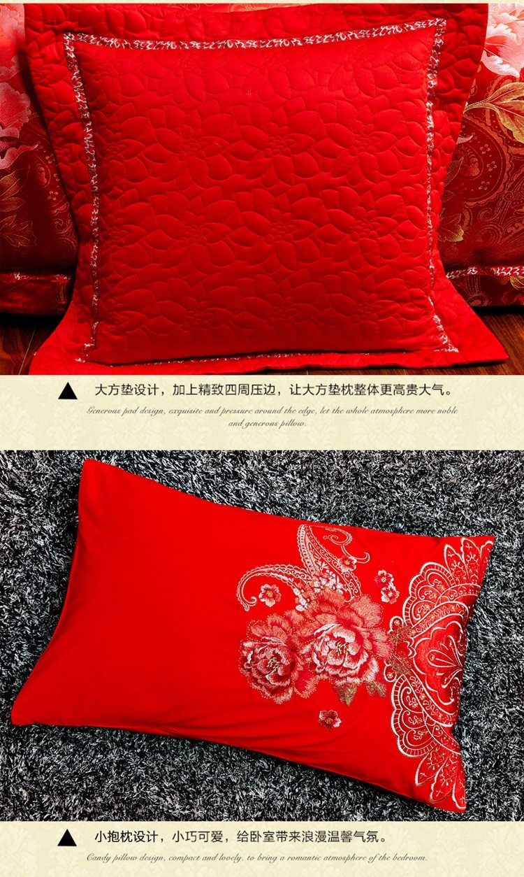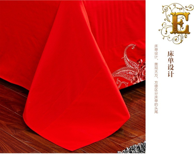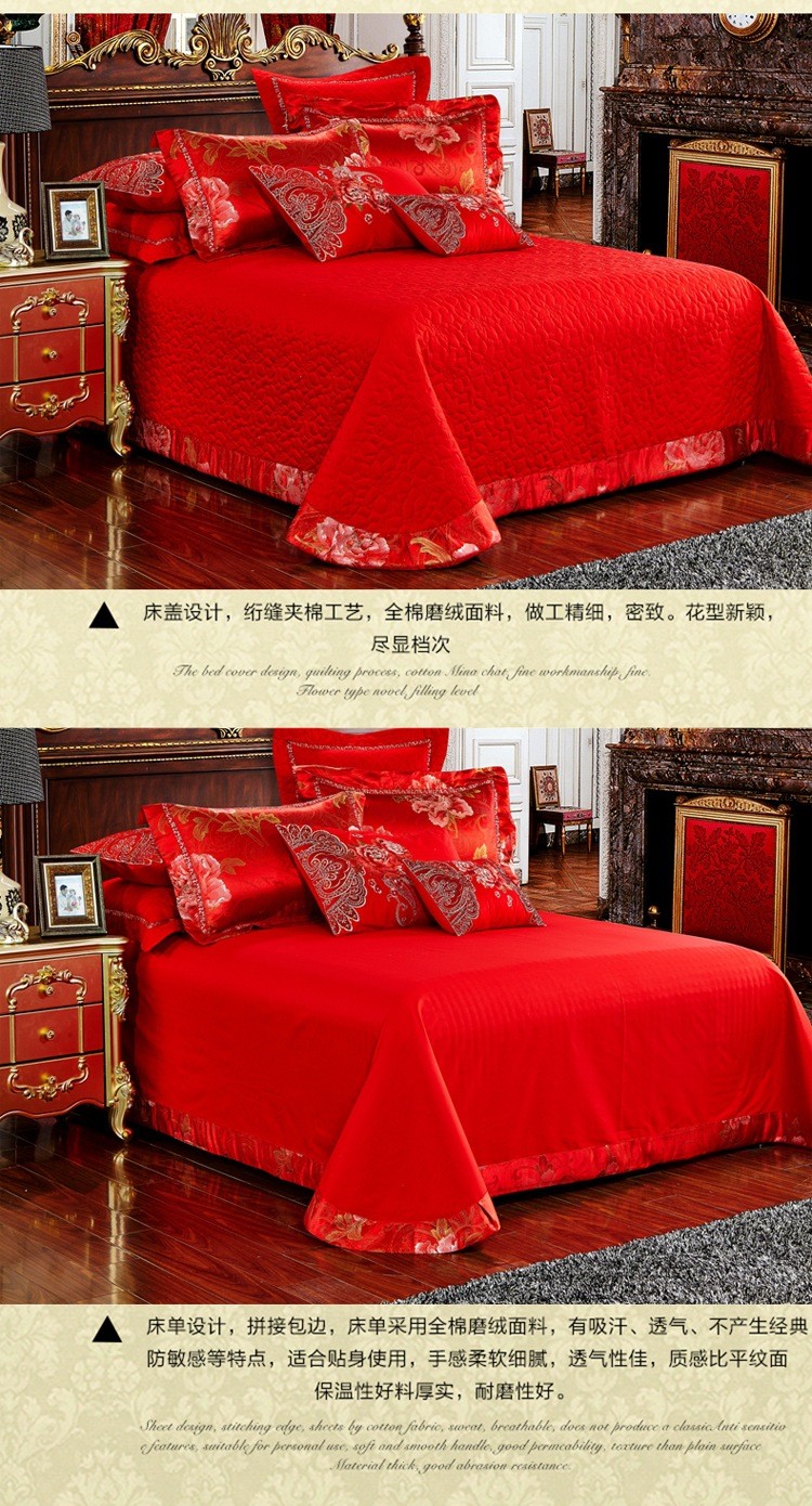 婚庆四件套大红床品被套多件套全棉结婚刺绣床上用品