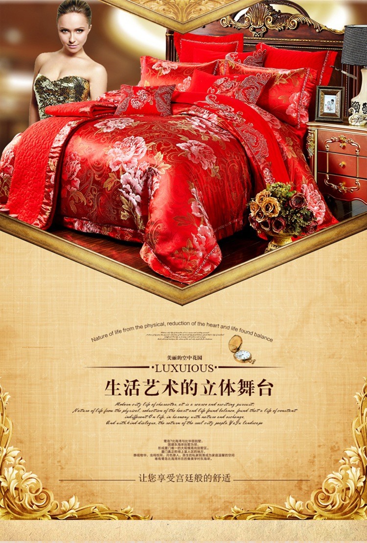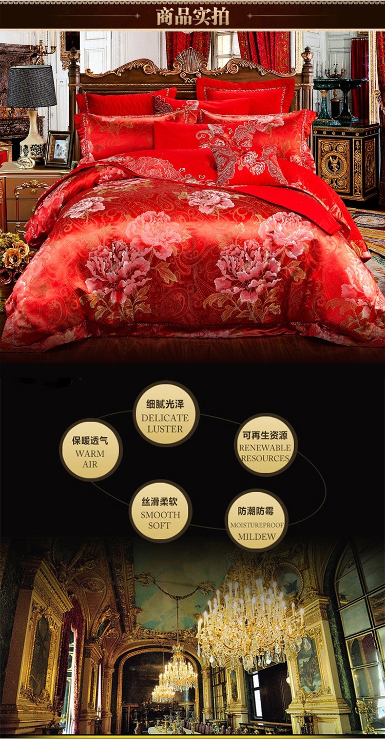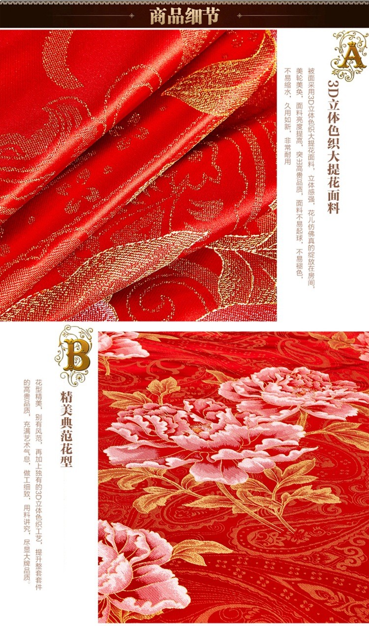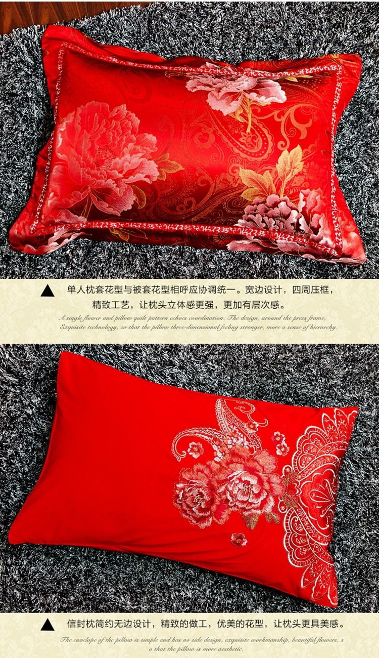 婚庆四件套大红床品被套多件套全棉结婚刺绣床上用品