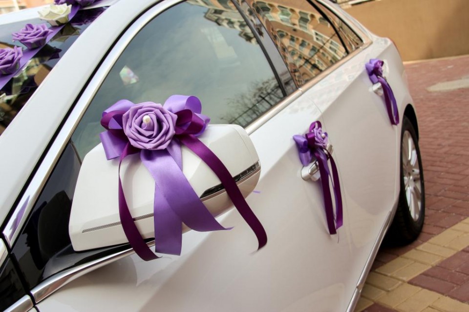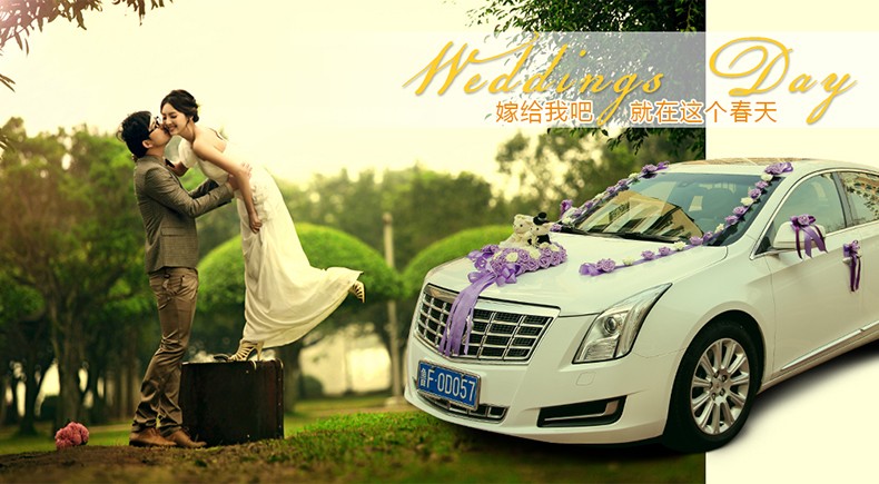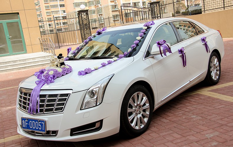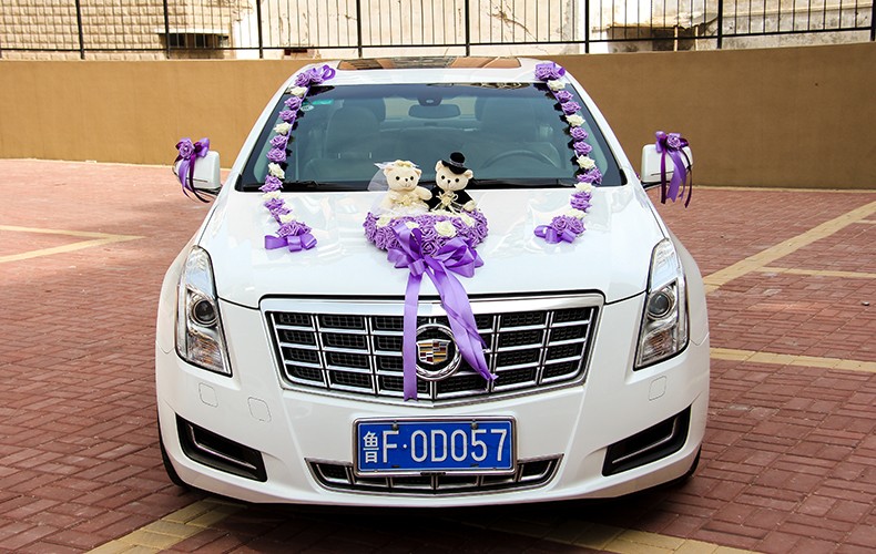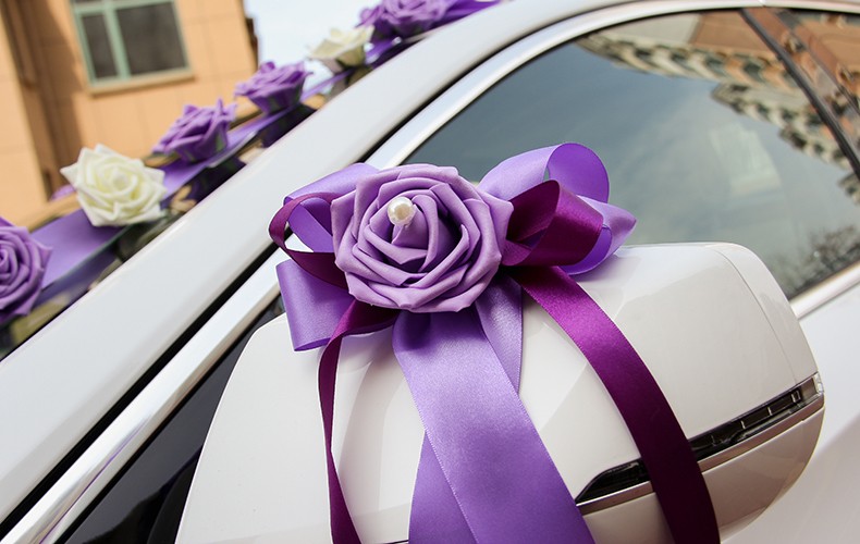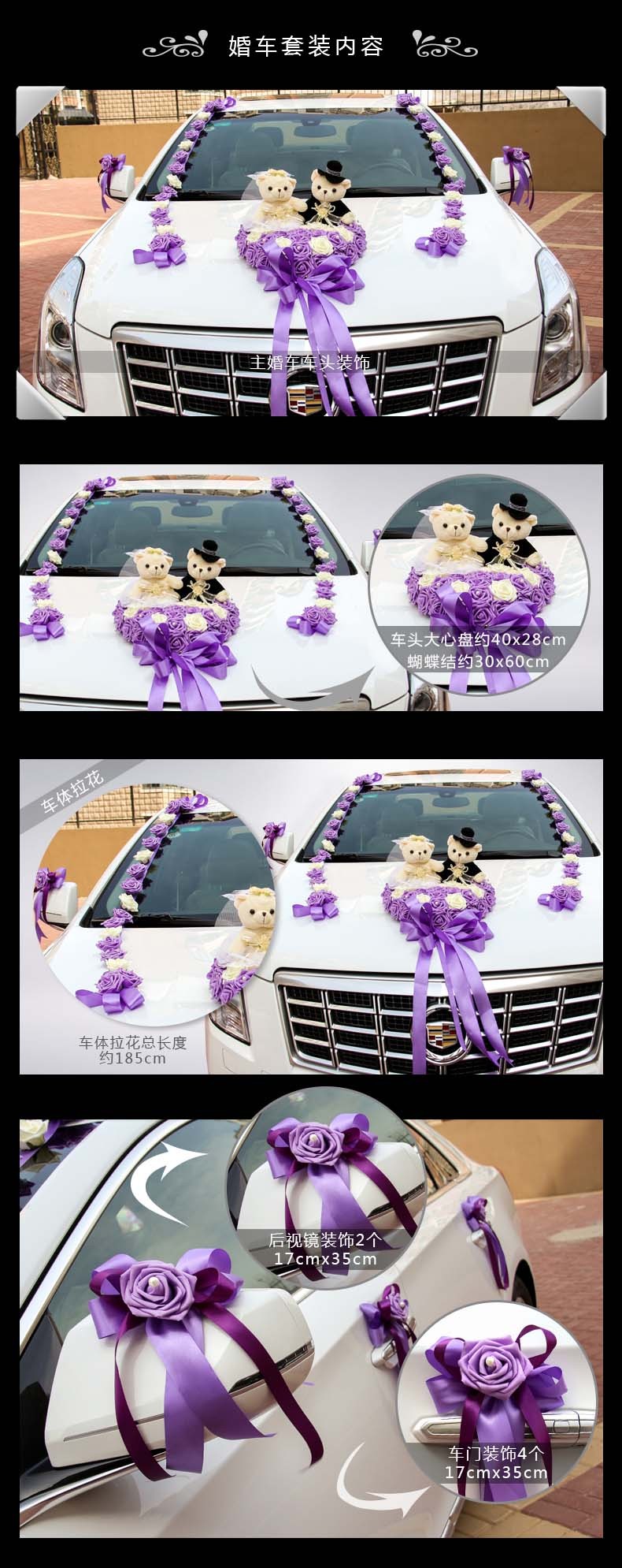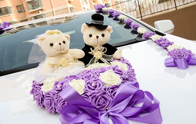 韩式可爱泰迪熊玩偶结婚车后视镜门把装饰紫色PE玫瑰