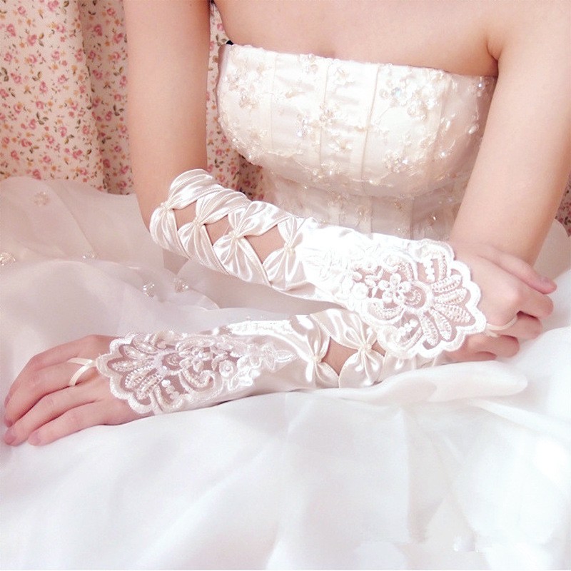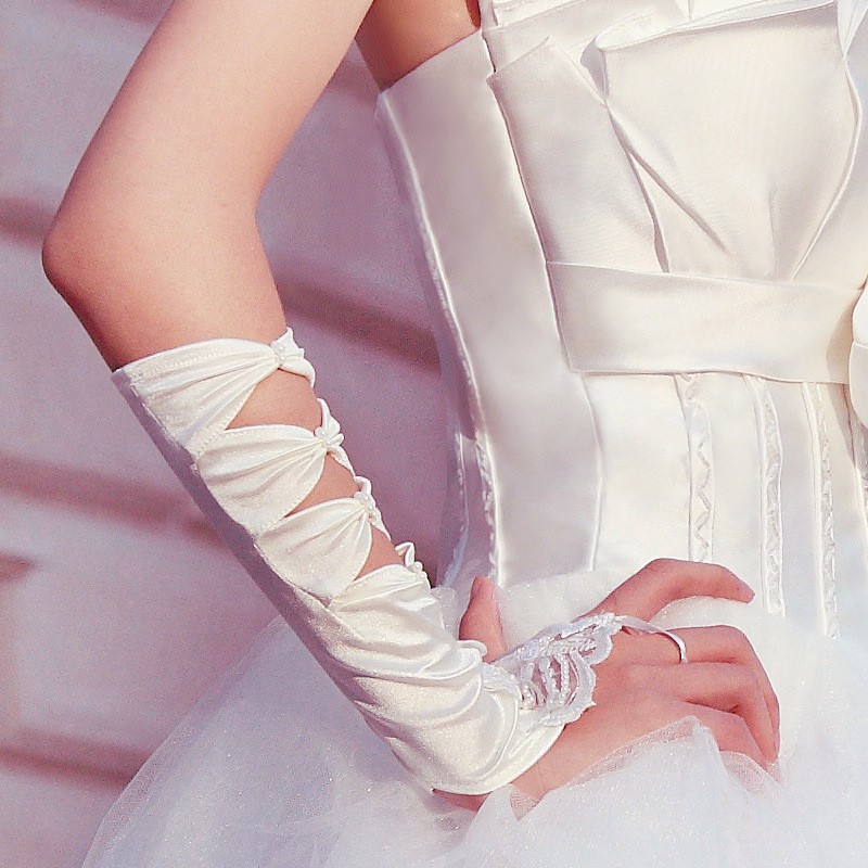 新款新娘手套 婚纱手套 长款带指绸缎冬季手套