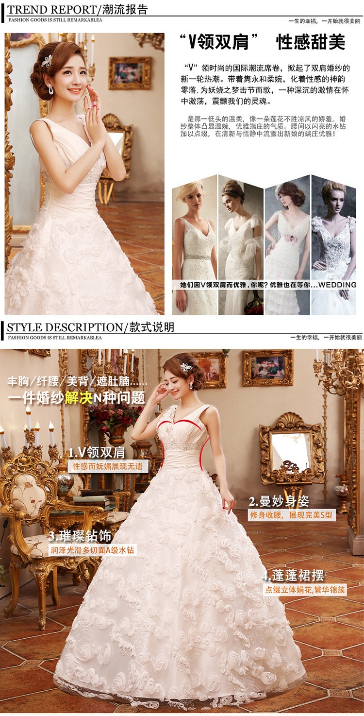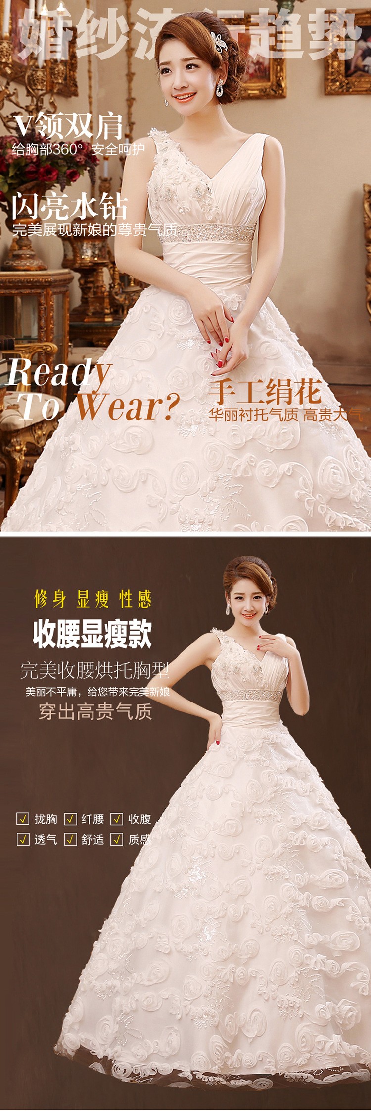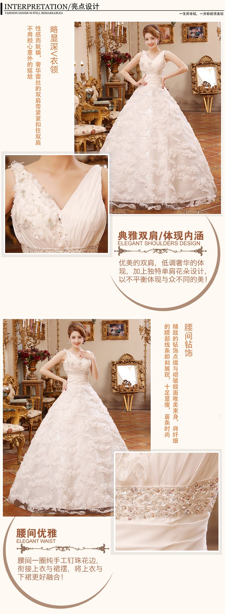 2017新款婚纱新娘 婚纱高档双肩蕾丝一字肩春季大码婚纱礼服