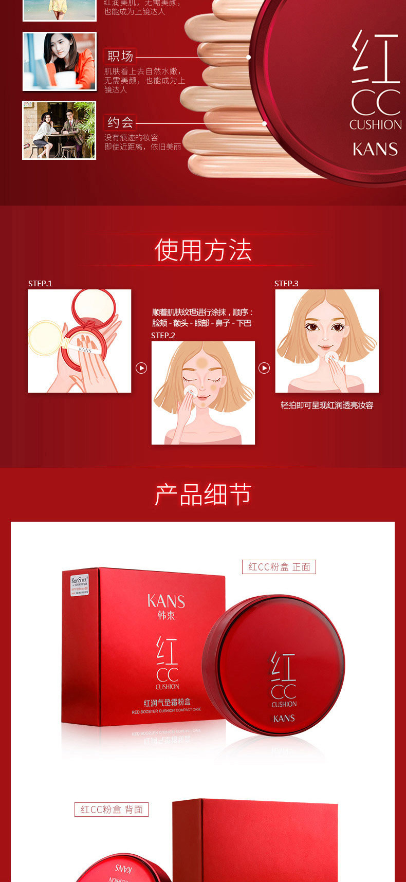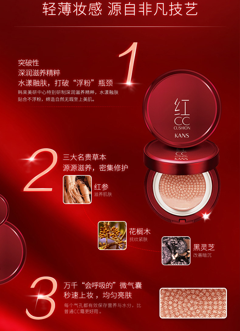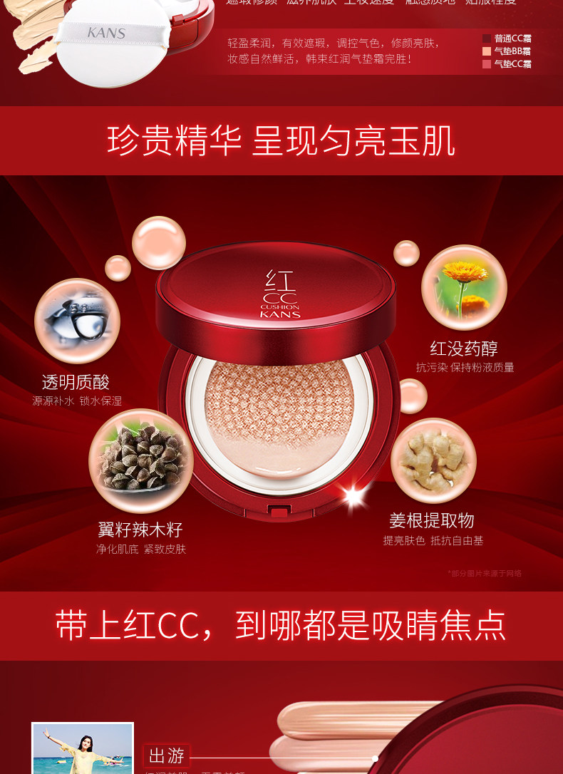 韩束红CC 红润气垫CC霜 裸妆遮瑕补水保湿粉底液隔离霜化妆品女