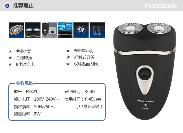 Flyco/飞科剃须刀FS821男士电动刮胡刀