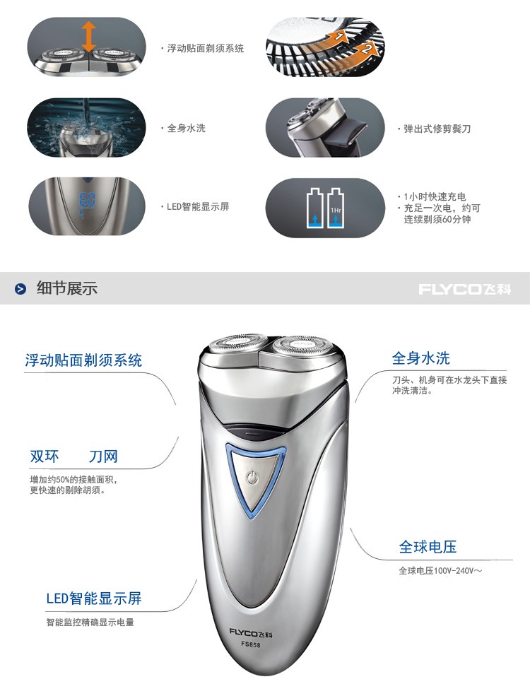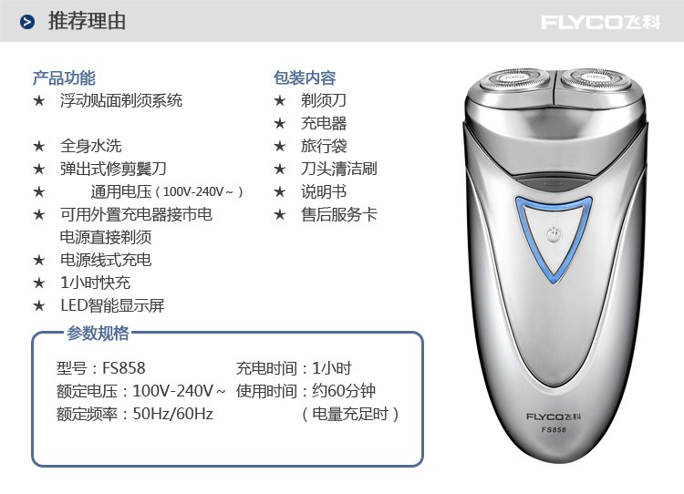 飞科FS858刮胡刀充电式递须刀全身水洗