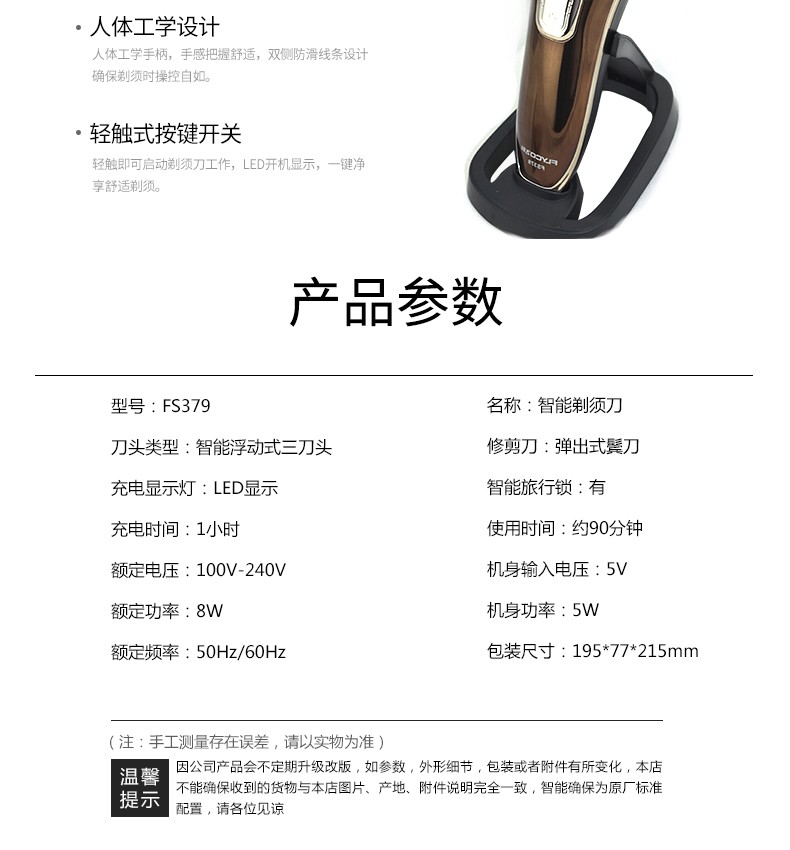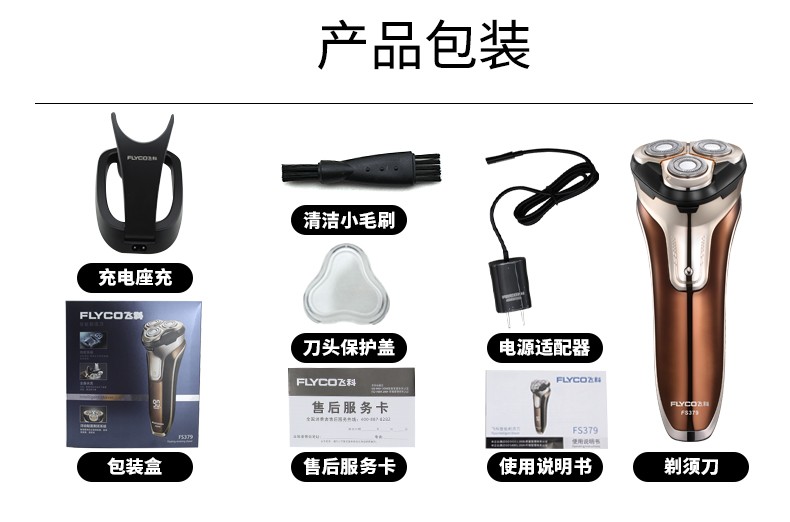 Flyco/飞科剃须刀FS379电动全身水洗充电刮胡刀