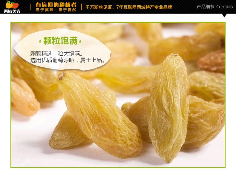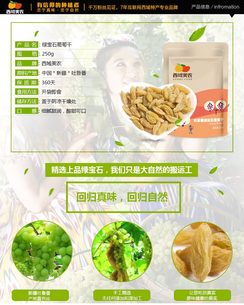 【西域美农_绿宝石葡萄干250g】新疆特产零食 大提子干干果