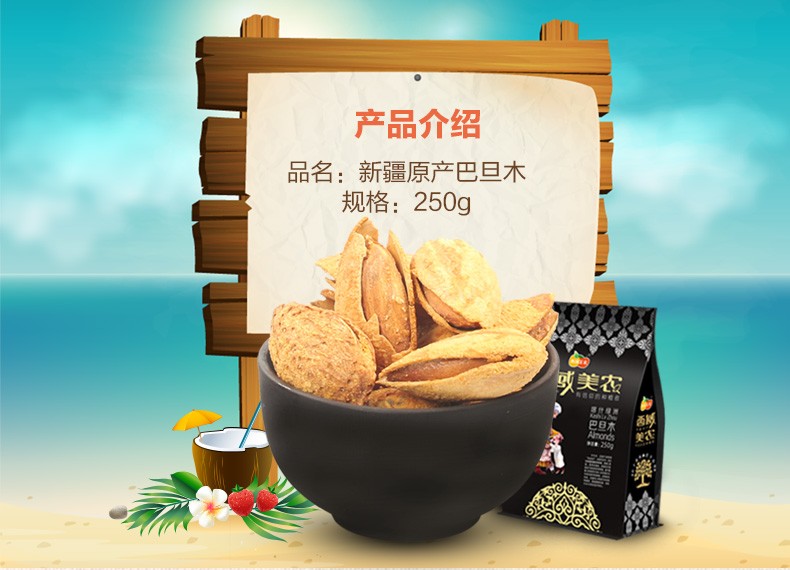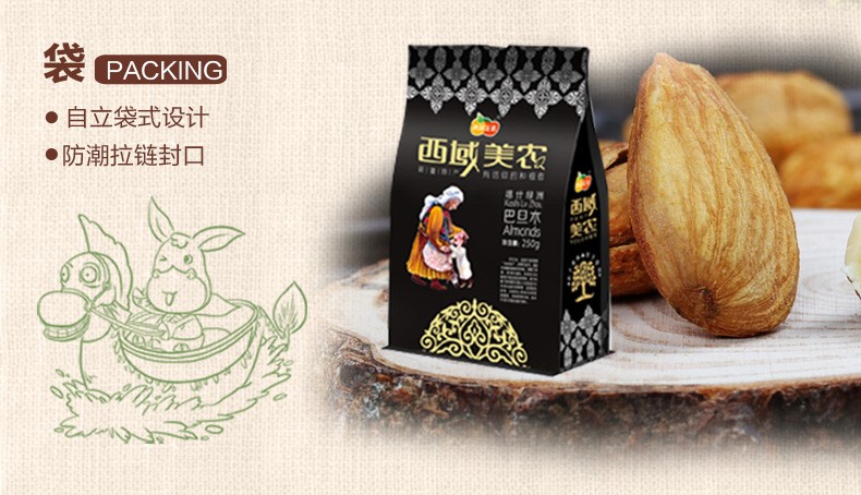 【西域美农_原味巴旦木250g】新疆特产坚果薄皮干果扁桃仁零食