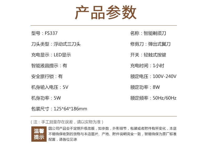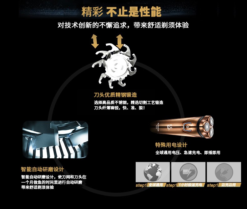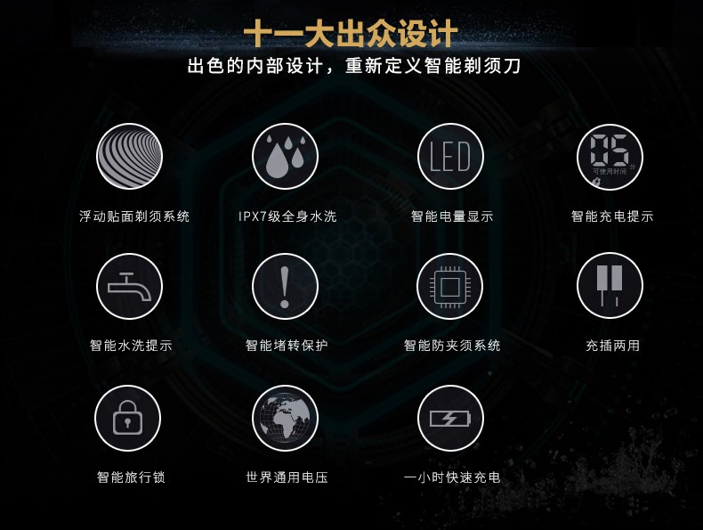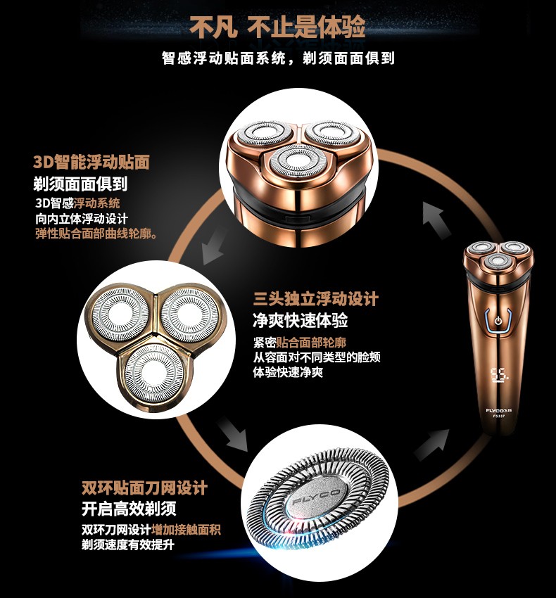 1小时快充充 3d浮动剃须 智能操作 全