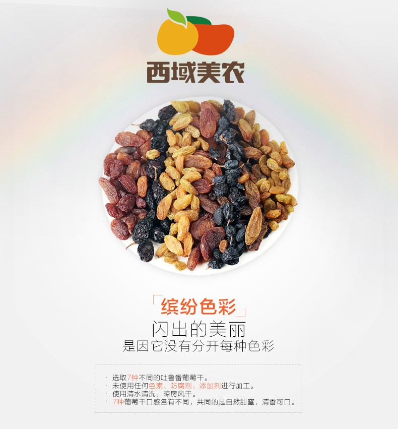 【西域美农_七色葡萄干420g】 新疆特产零食干果 七彩葡萄干