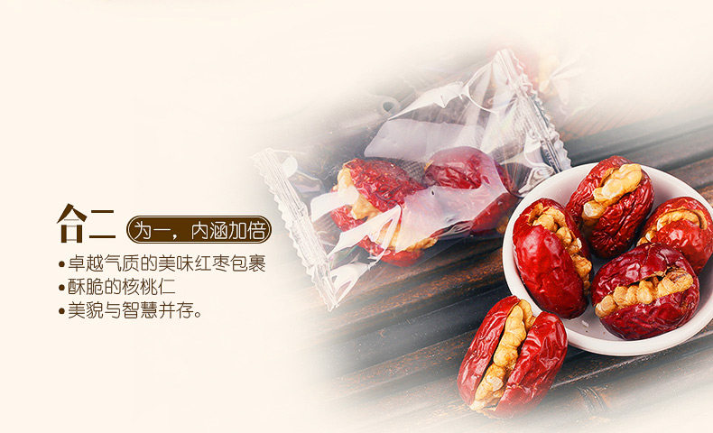 【西域美农_美仁枣268g】特产休闲零食 和田红枣包核桃仁 抱抱果