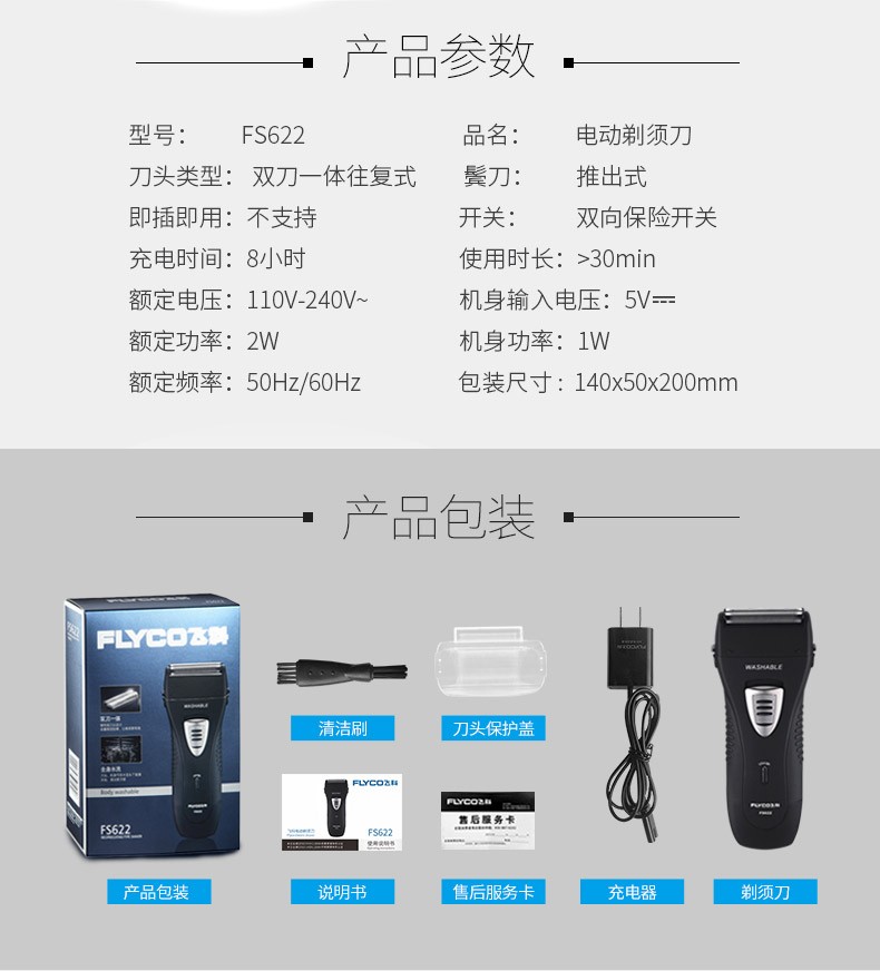 Flyco/飞科FS622电动充电剃须刮胡刀