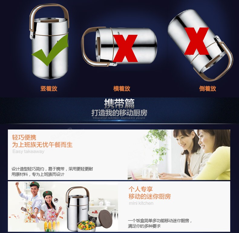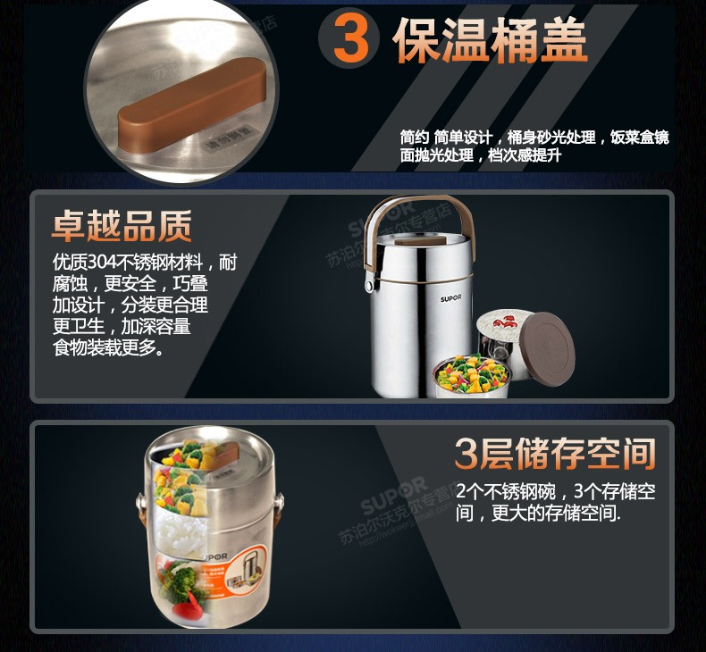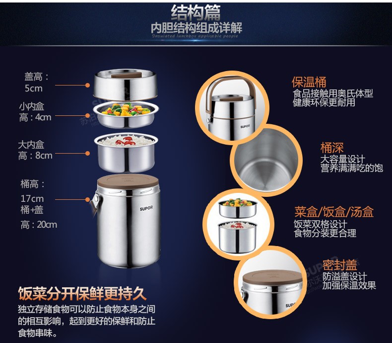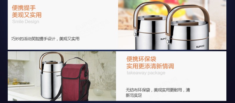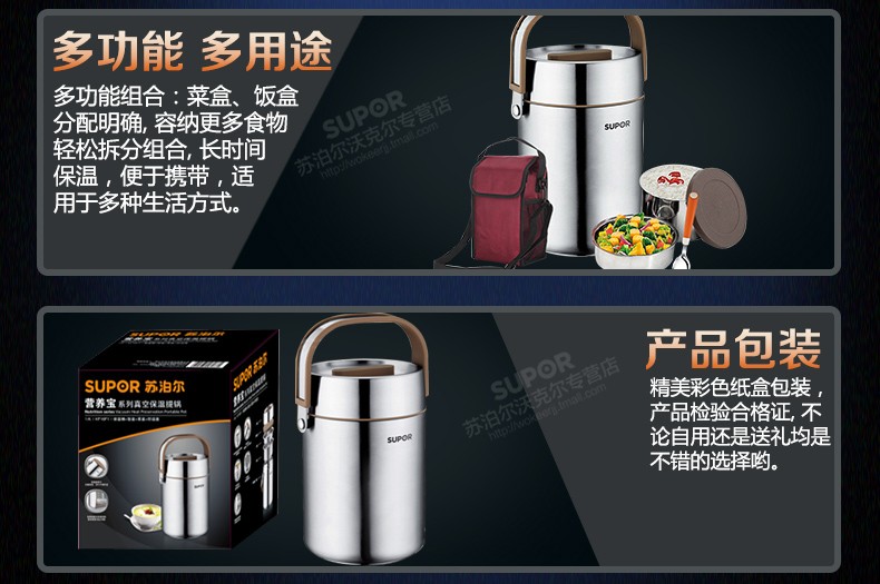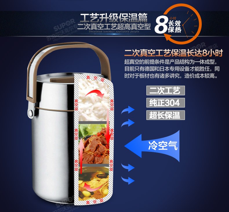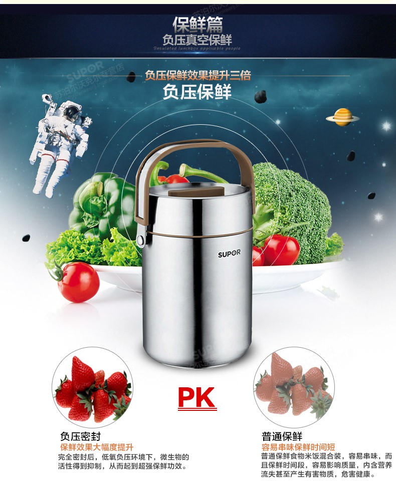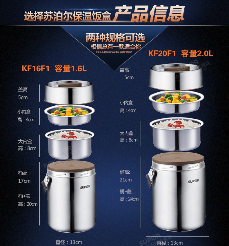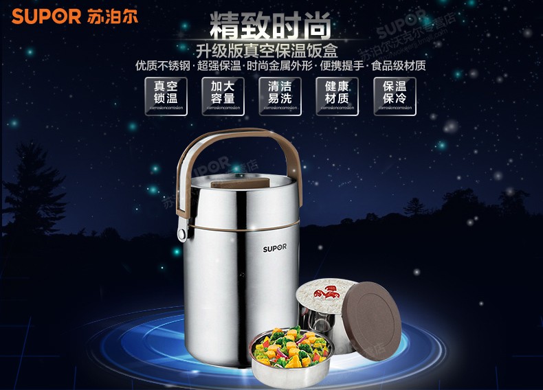 苏泊尔 KF20F1 2L不锈钢真空 12小时恒久 三层保温提锅2升