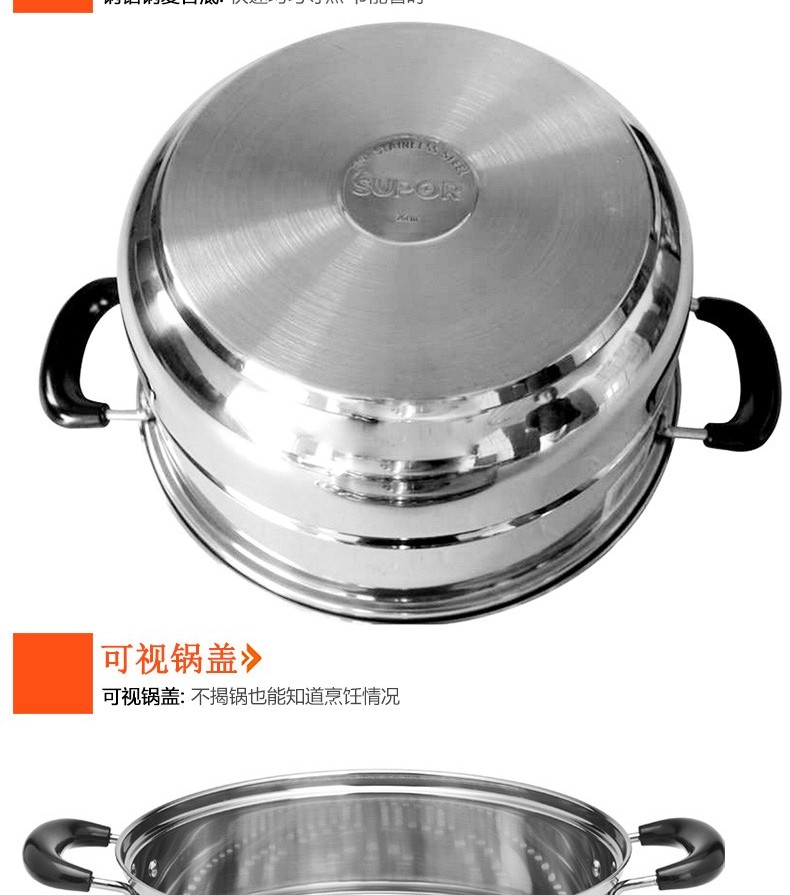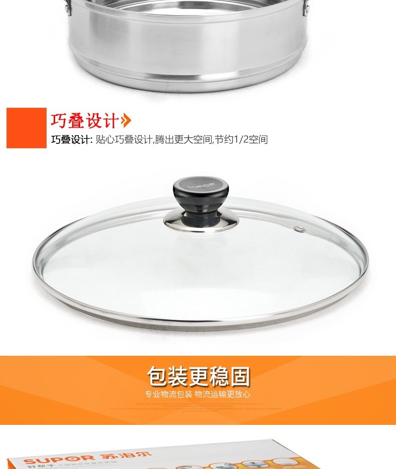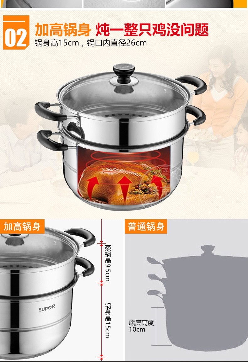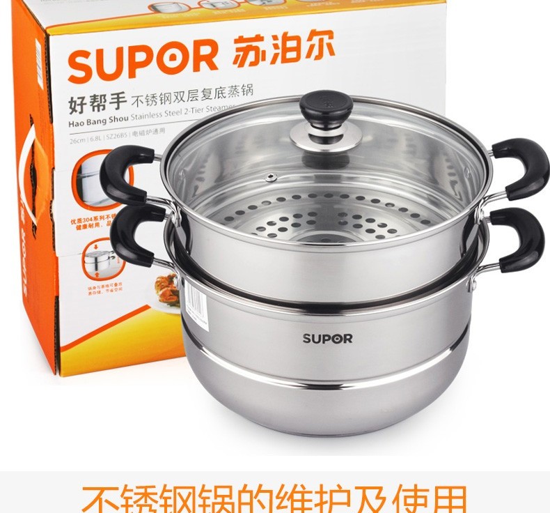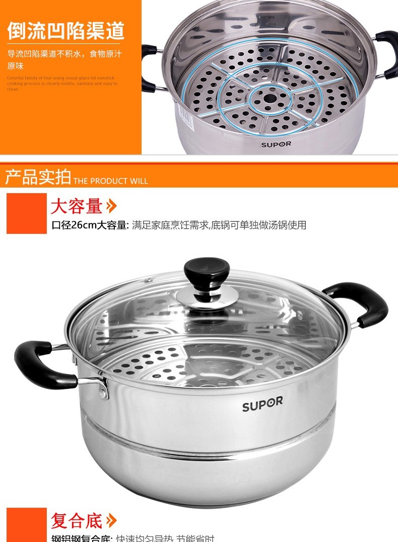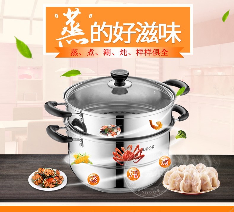 苏泊尔蒸锅304不锈钢二层2层双层加厚复底电磁炉锅具蒸格汤锅蒸笼SZ26B5