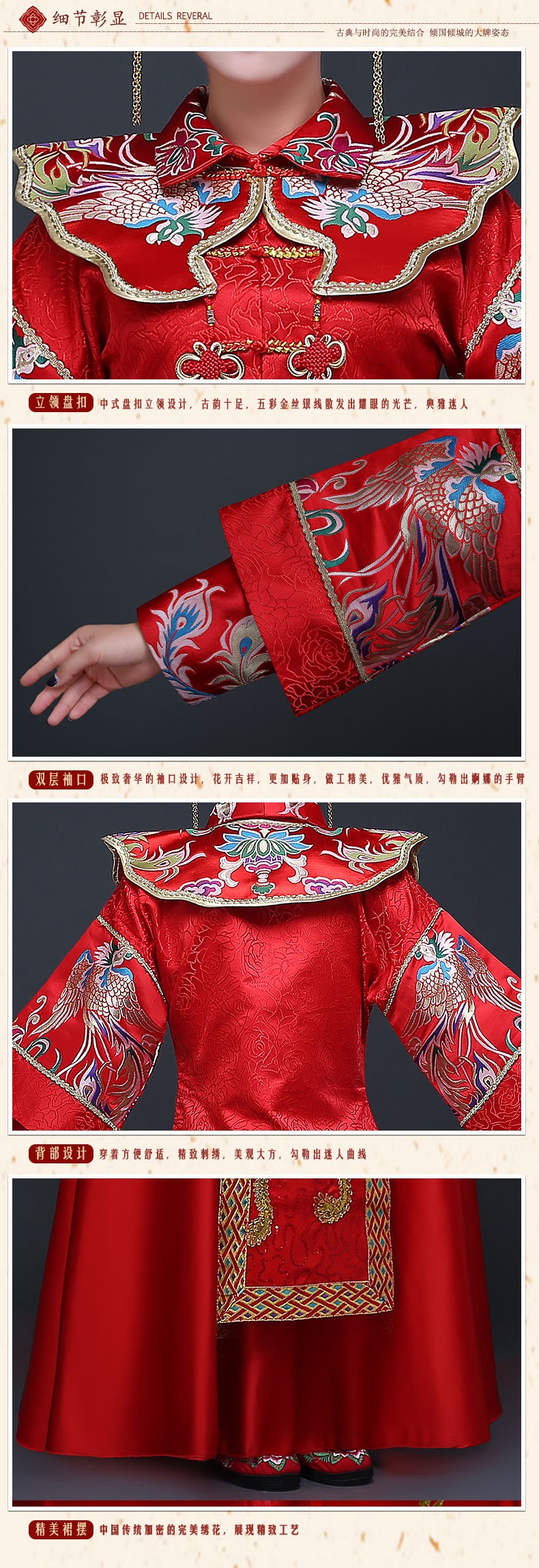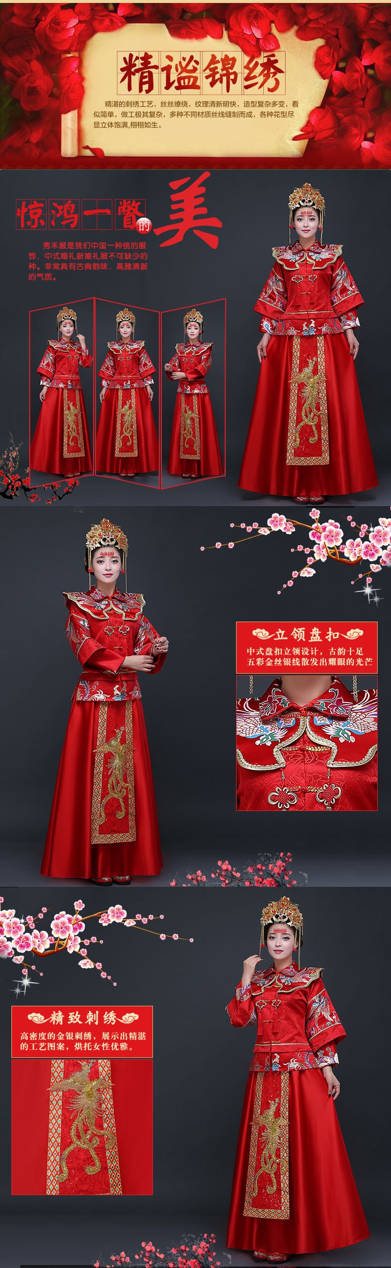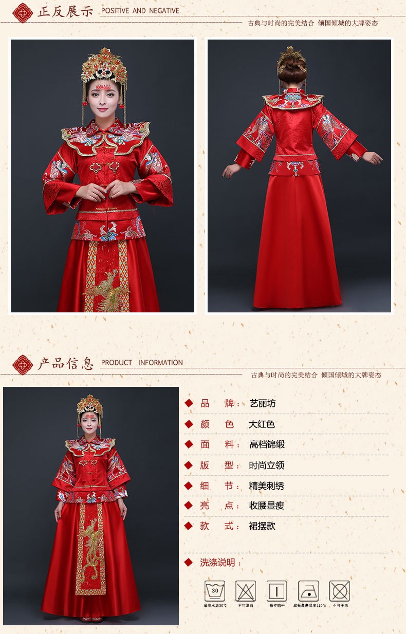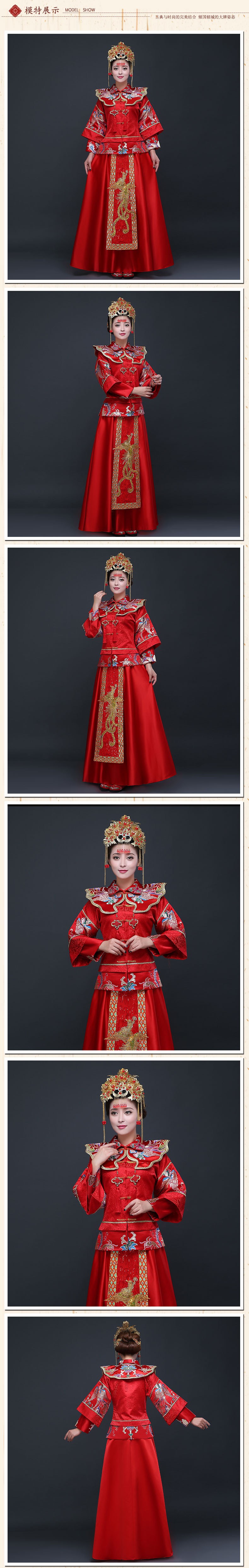 新款手工刺绣龙凤褂秀禾新娘礼服 结婚敬酒古典龙凤褂大红秀禾服