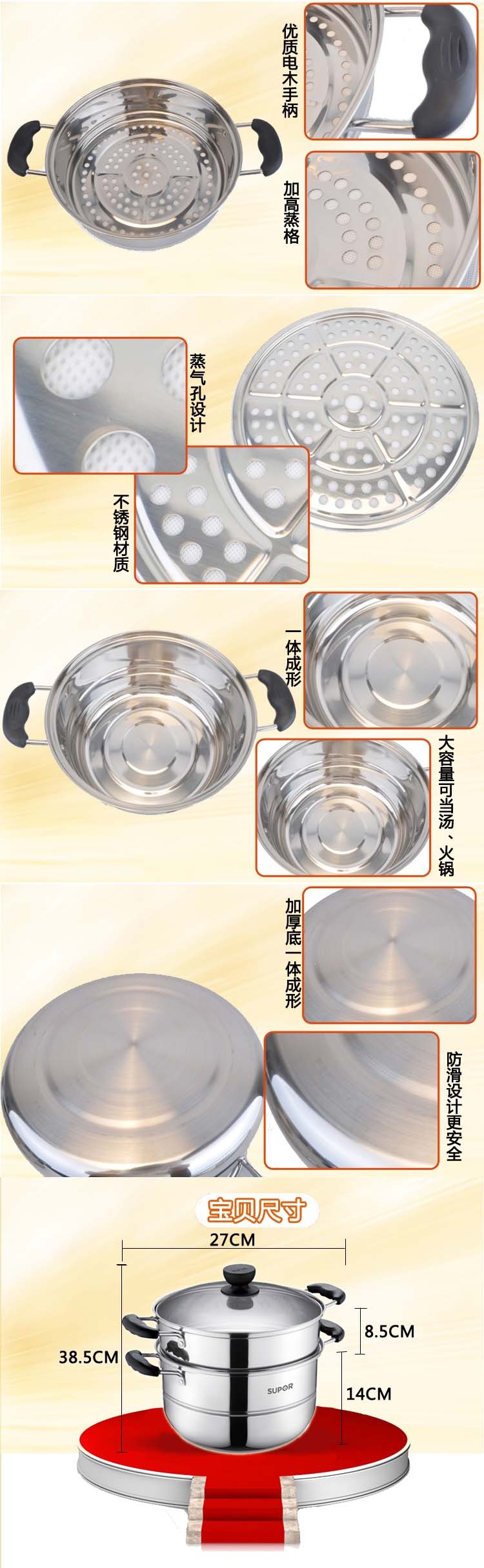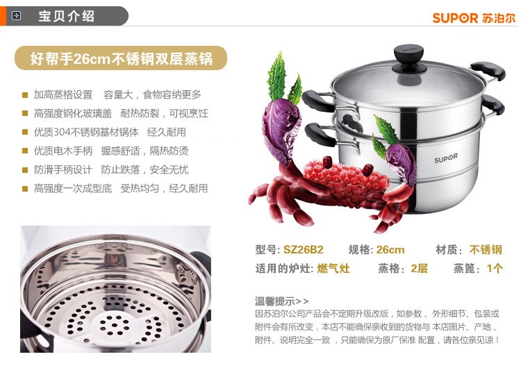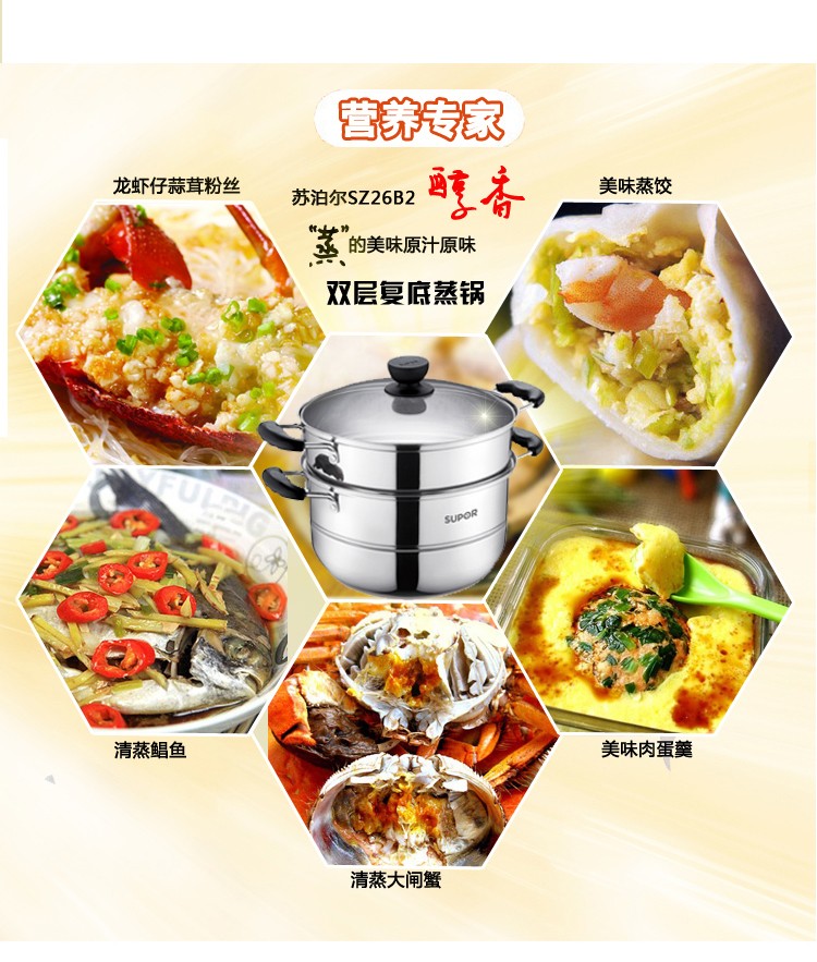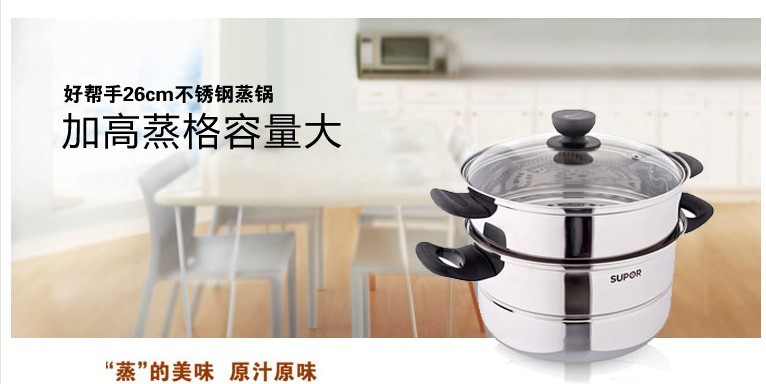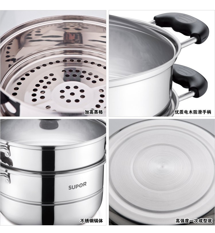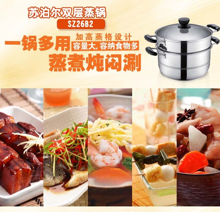 苏泊尔SZ26B2蒸锅304不锈钢二层加厚汤锅复底电磁炉通用锅具