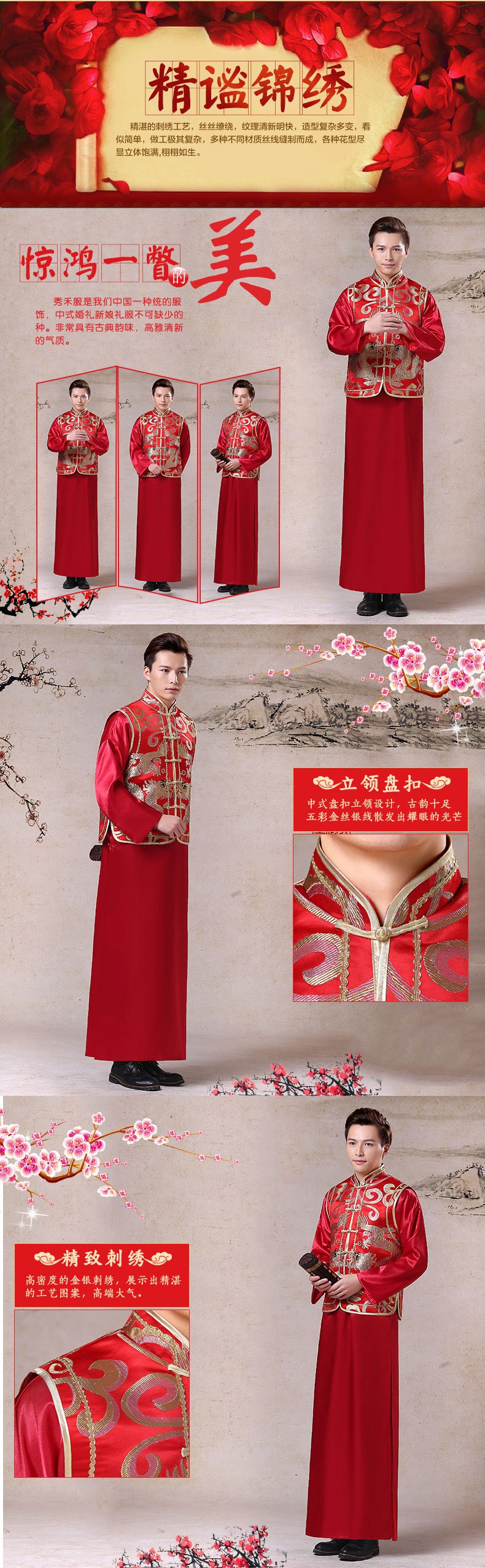 新款中式手工刺绣秀禾新郎礼服 复古男士结婚敬酒秀禾礼服新郎装