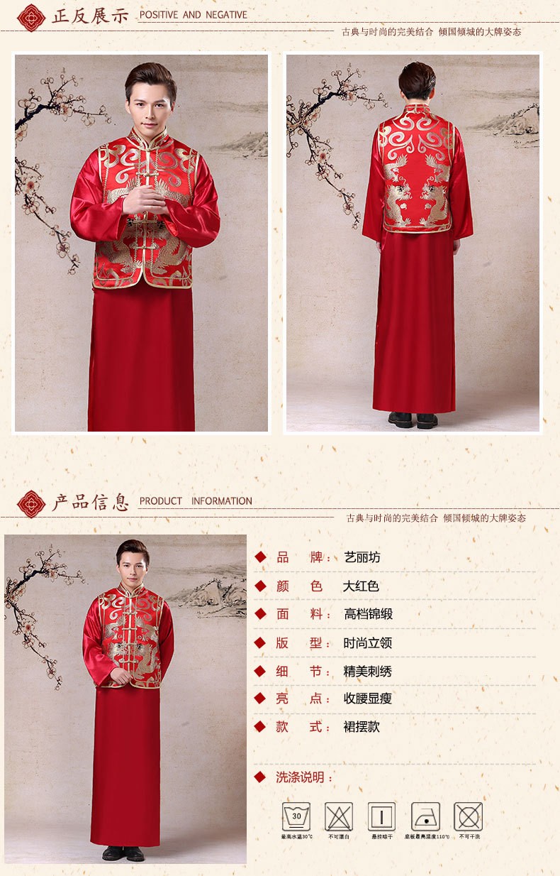 复古男士结婚敬酒秀禾礼服新郎装