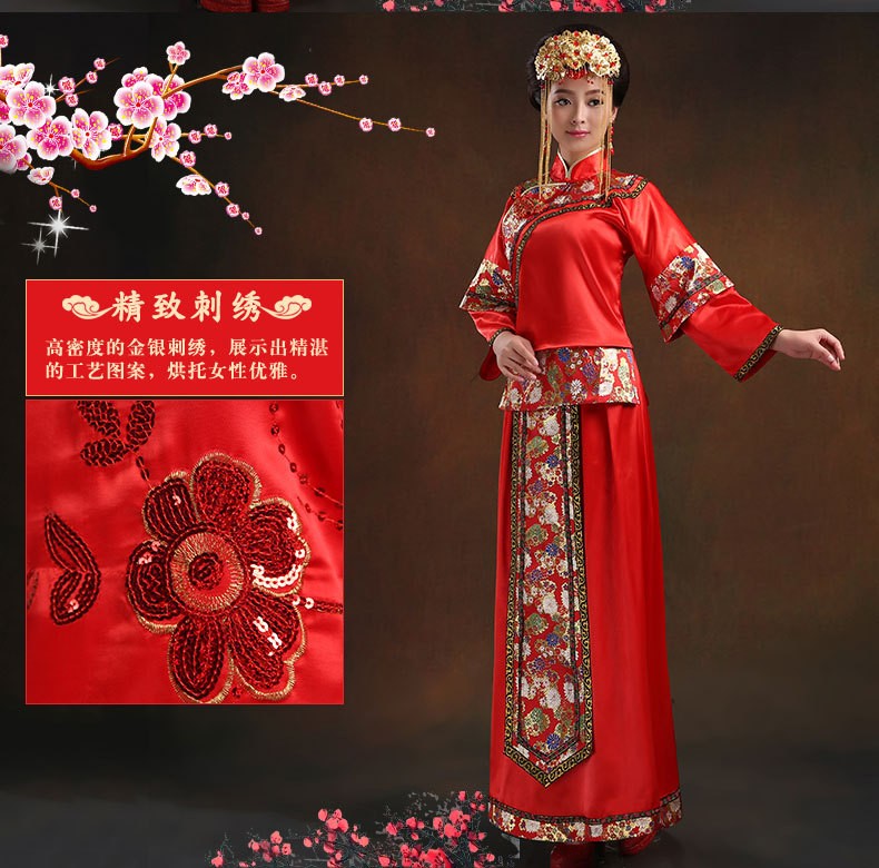 新款中式手工刺绣秀禾新娘礼服 结婚敬酒古典礼服大红秀禾服