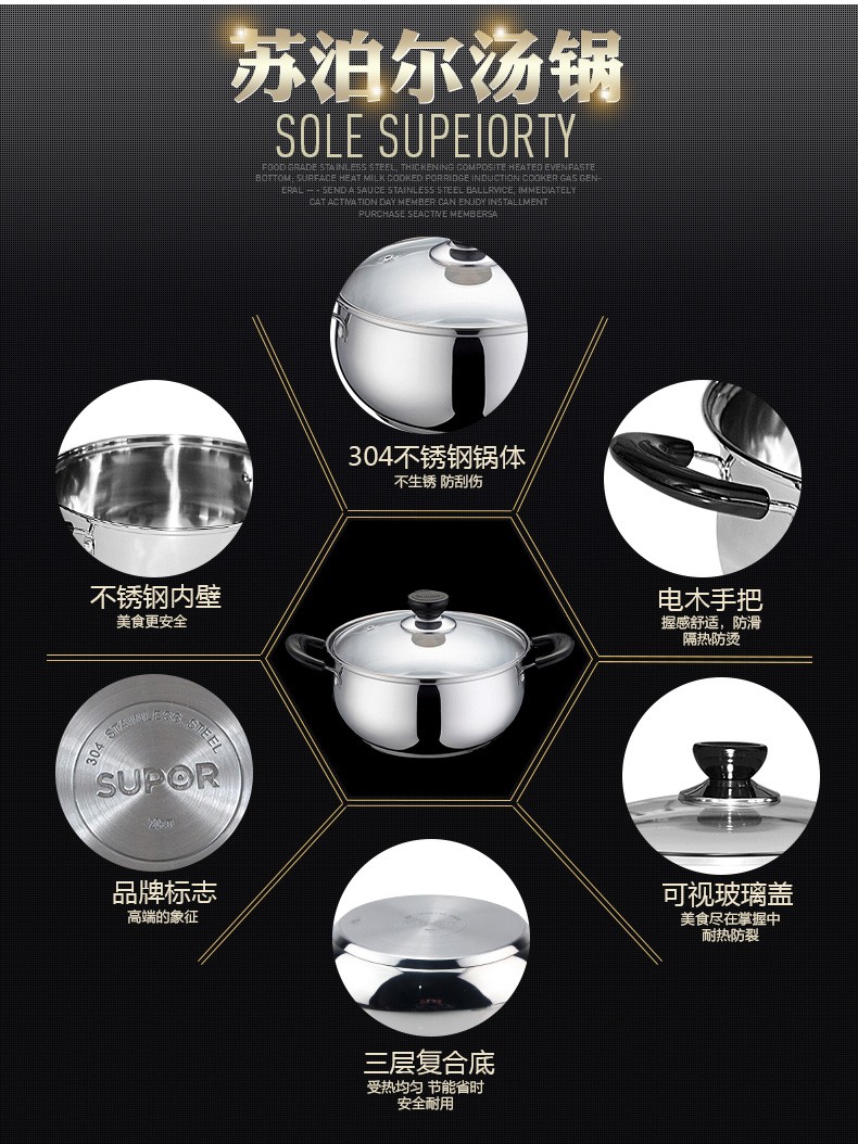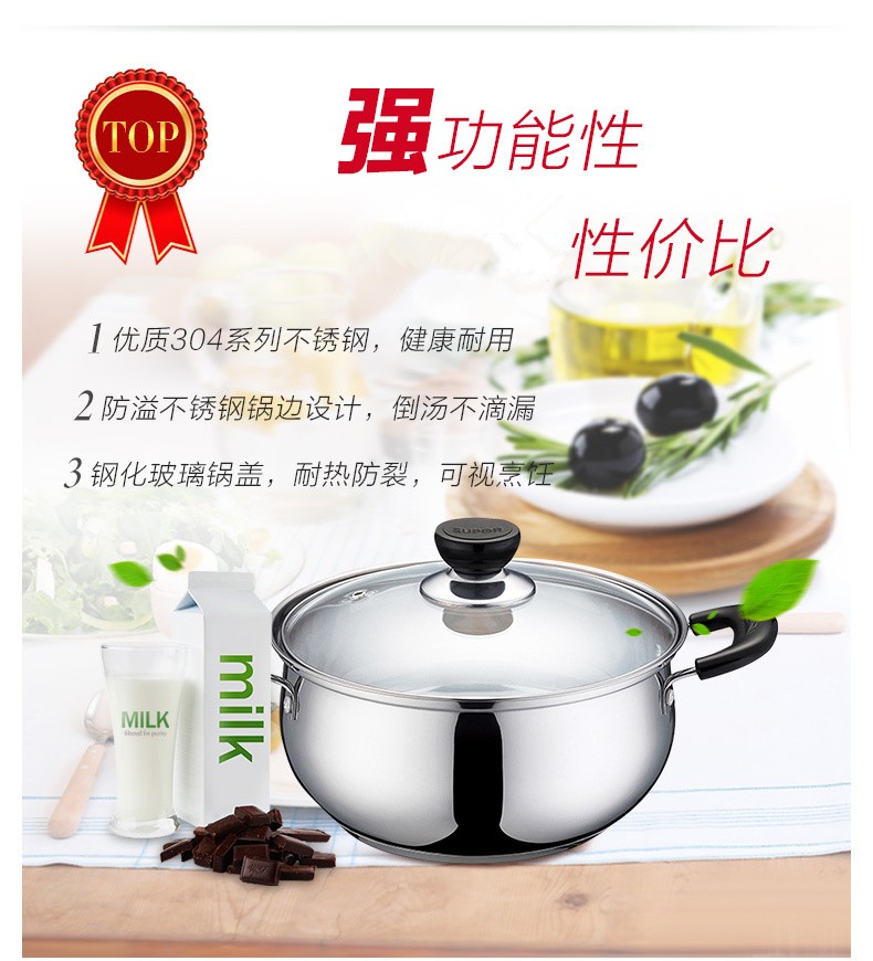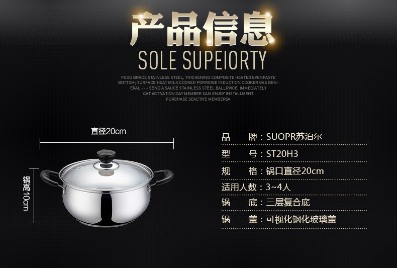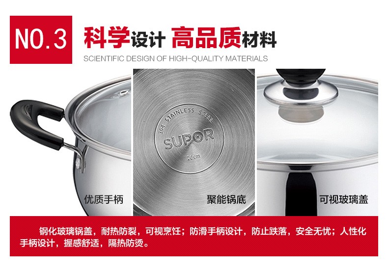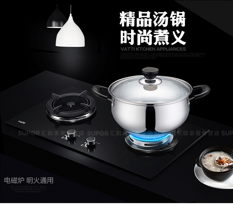 苏泊尔ST20H3汤锅 三层复底 电磁炉通用 304不锈钢20CM锅具