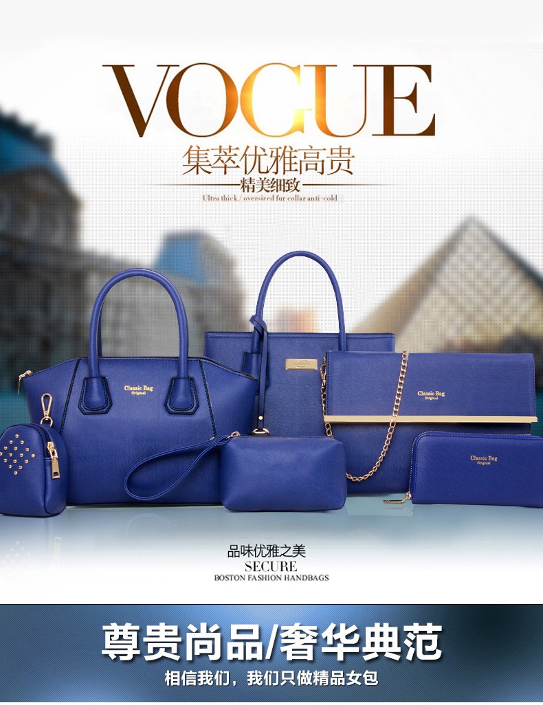 箱包鞋类 > 女包 > 芸曦女包2017新款女包包女士手提单肩斜跨子母包六件套包 正品 蓝