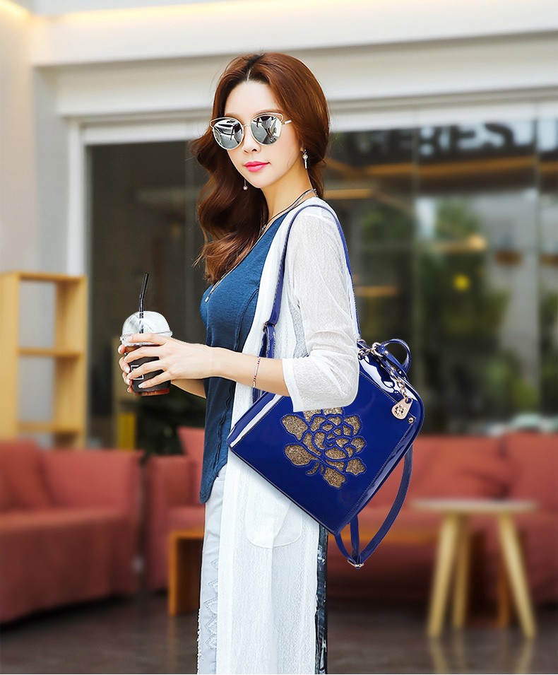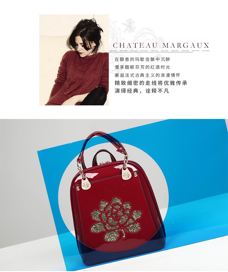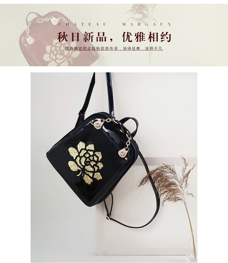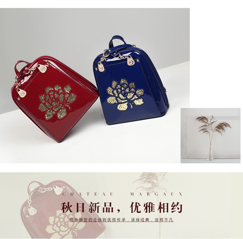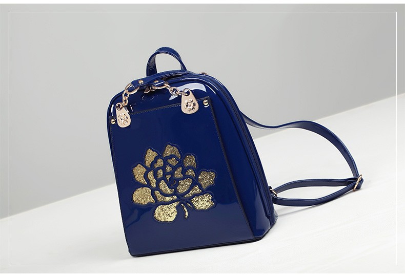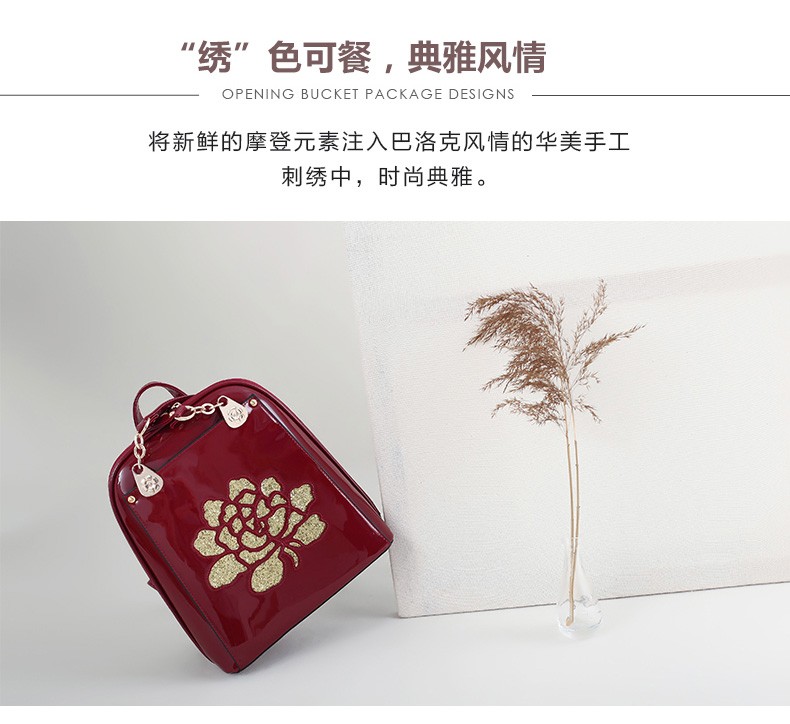 2017年新款女士书包中国风气质亮片漆皮手提包包多功能双肩背包