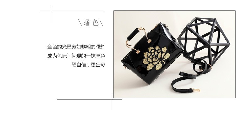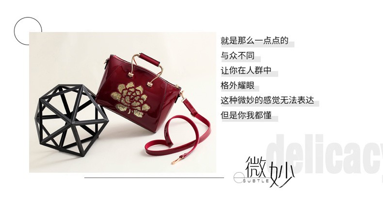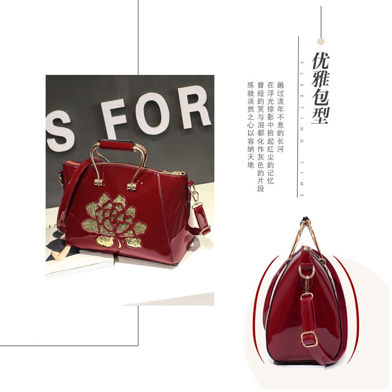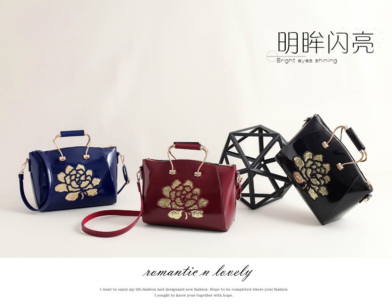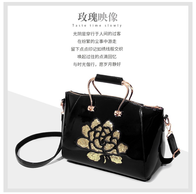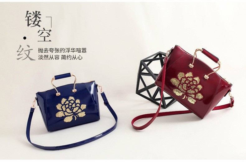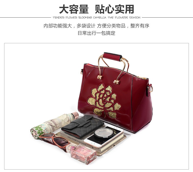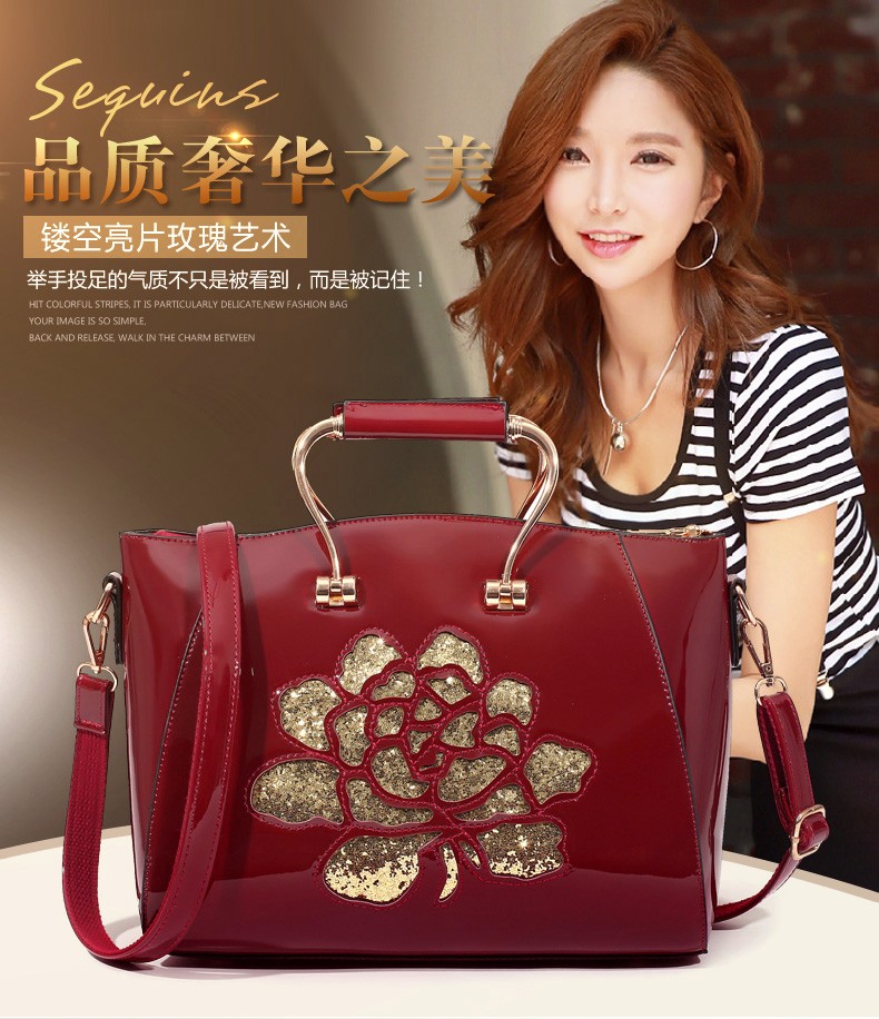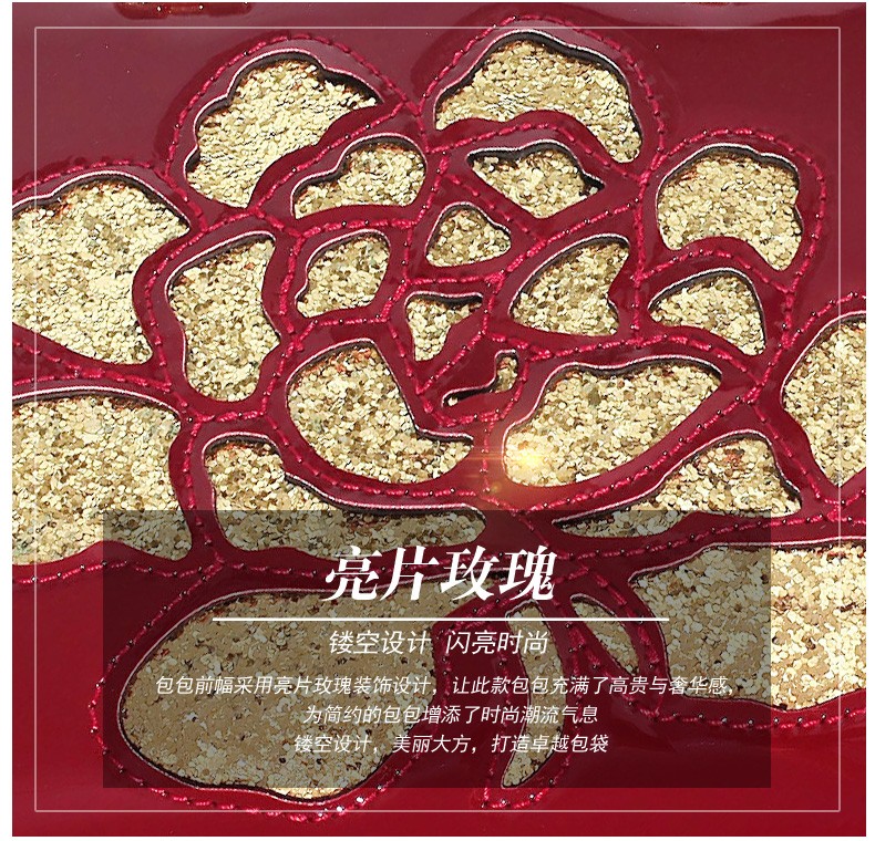 女包中国风潮流2017年新款亮片玫瑰花手提包复古漆皮单肩斜挎包