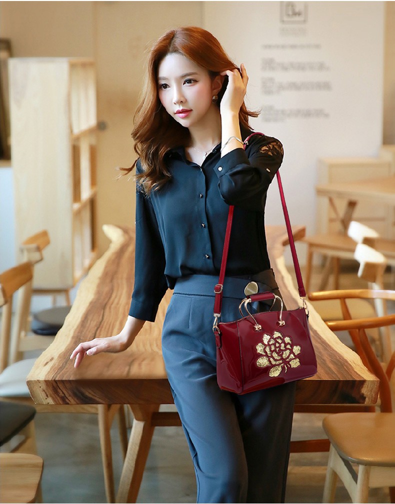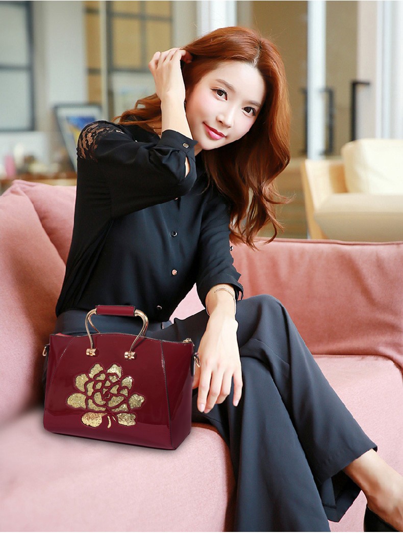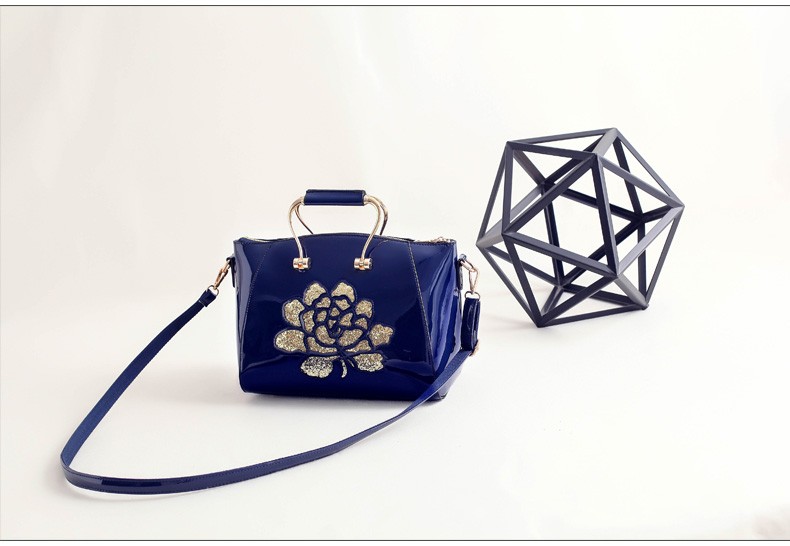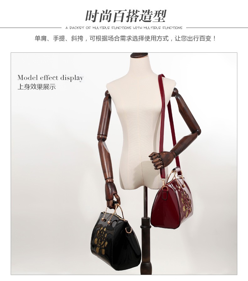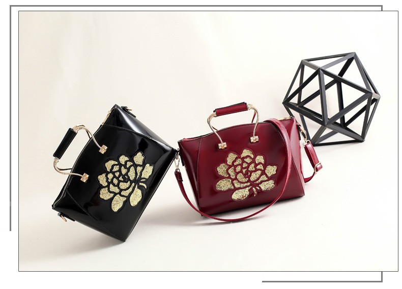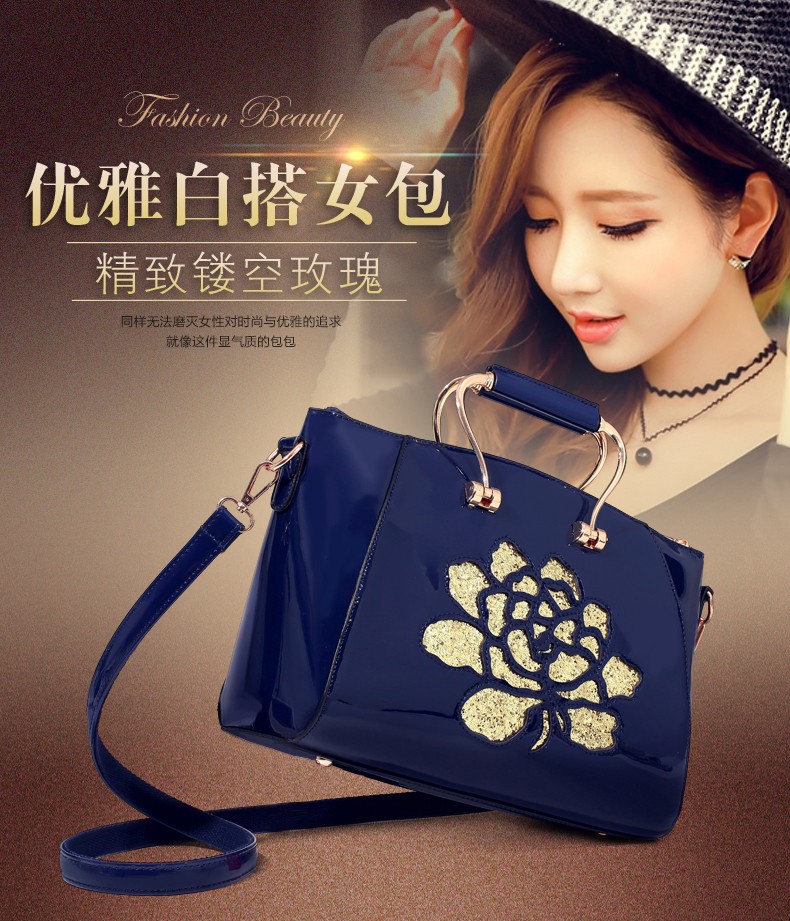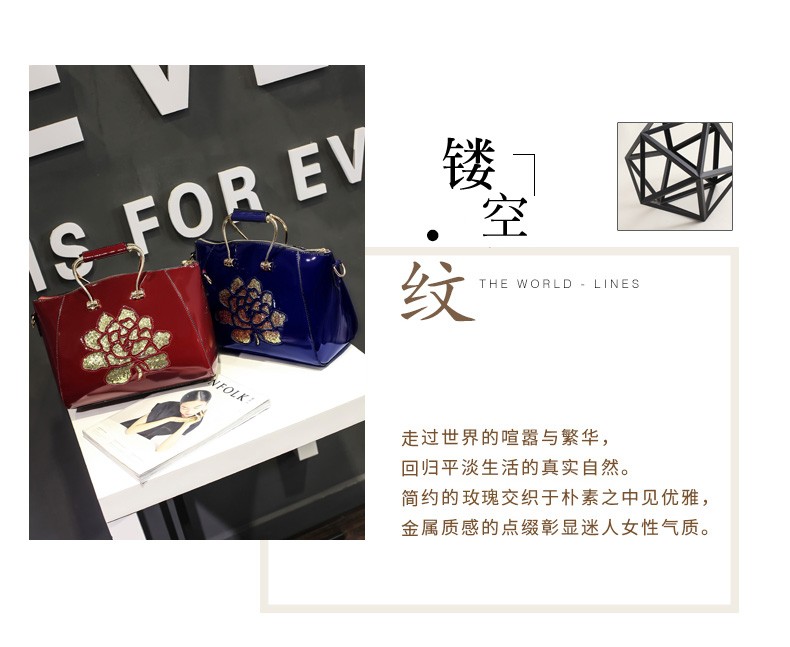 女包中国风潮流2017年新款亮片玫瑰花手提包复古漆皮单肩斜挎包