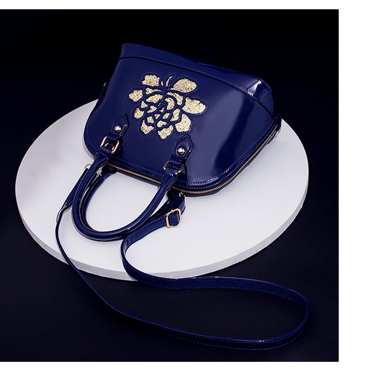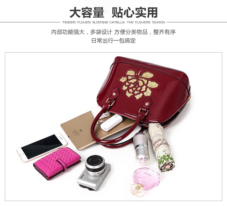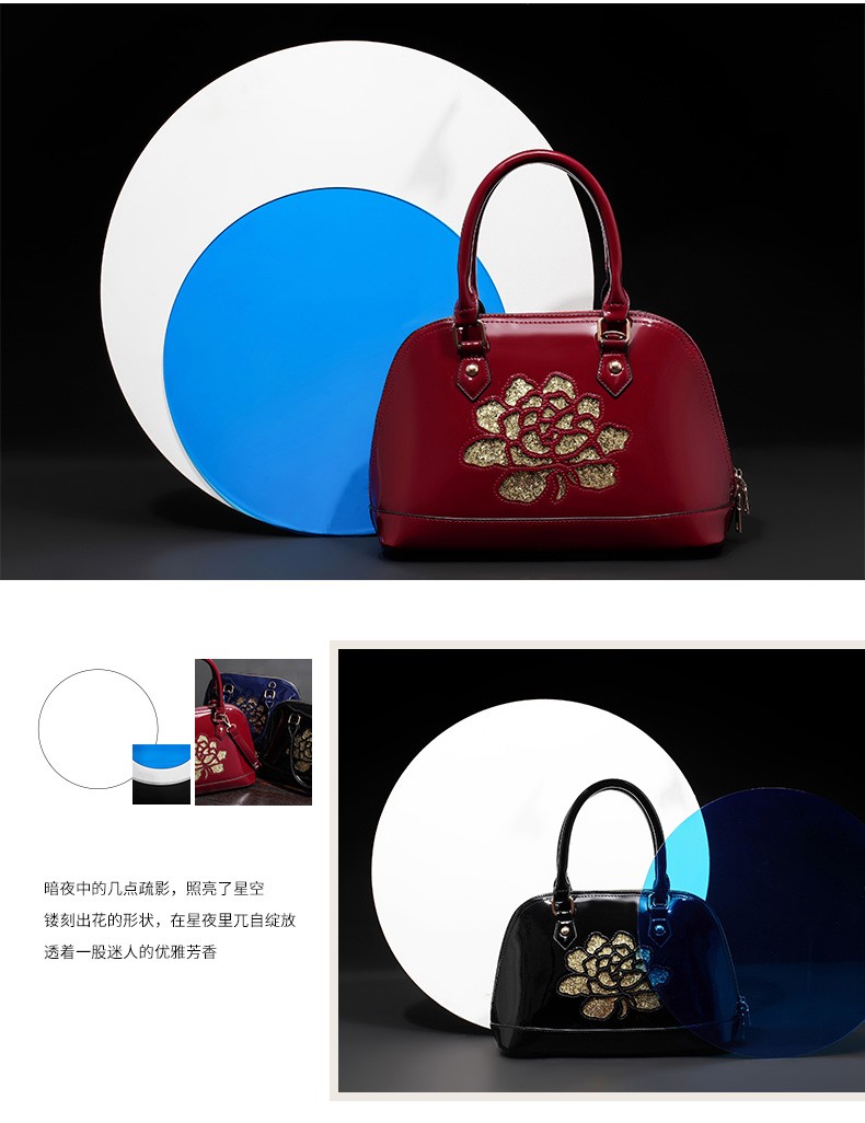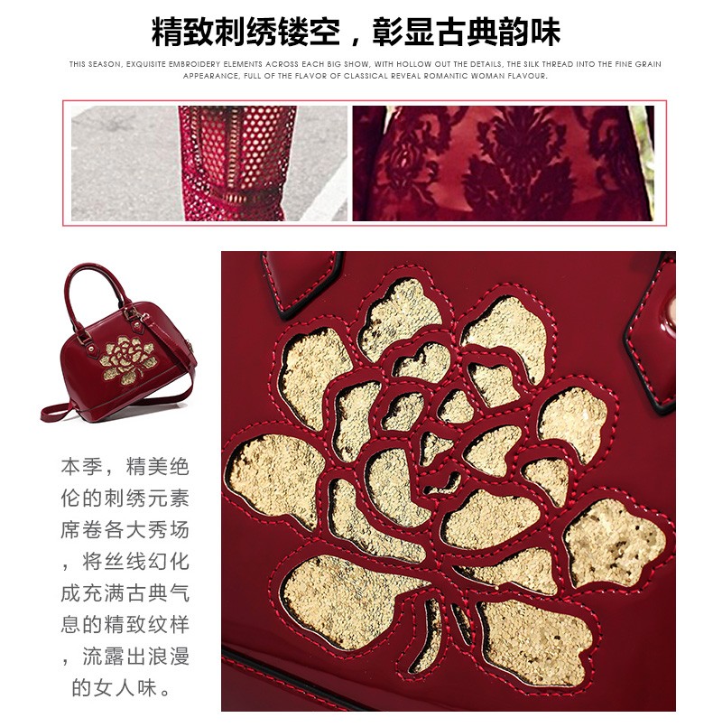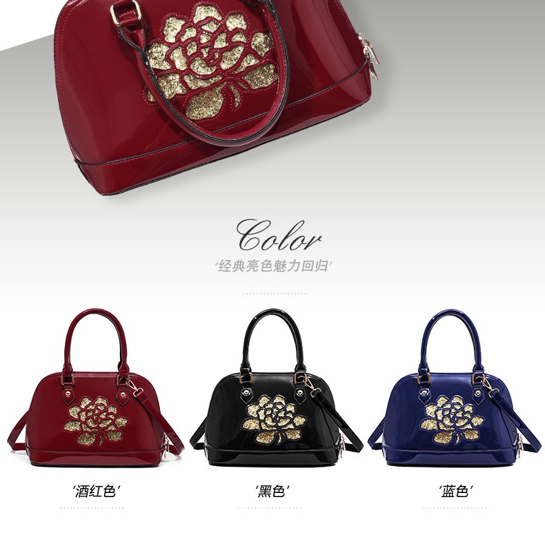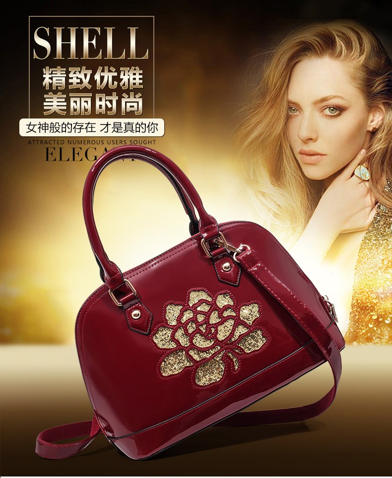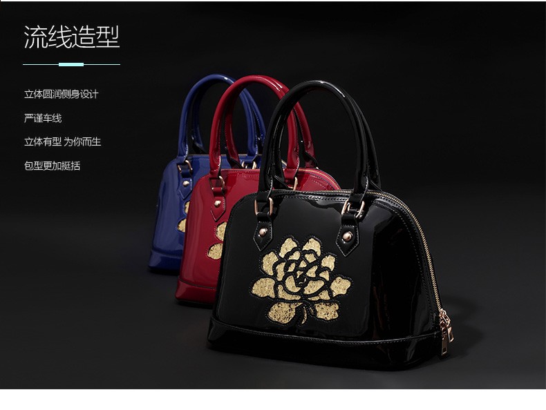 2017年新款女包漆皮亮片贝壳包韩版休闲刺绣时尚中国风手提包潮