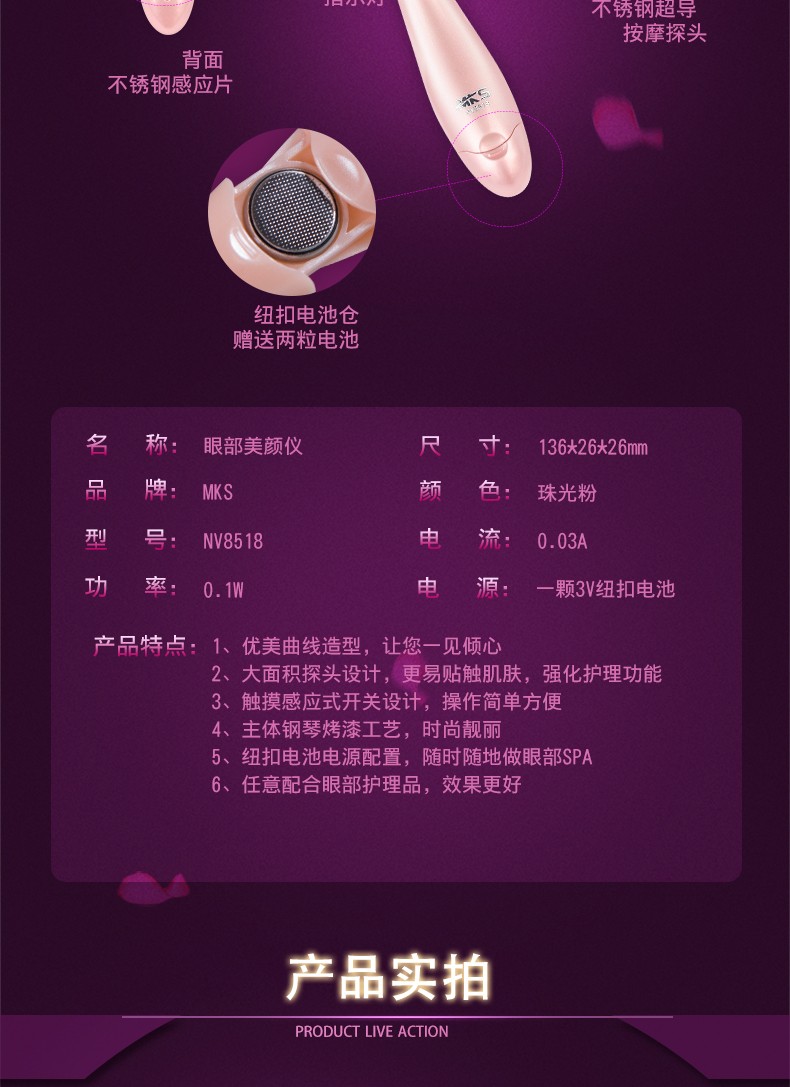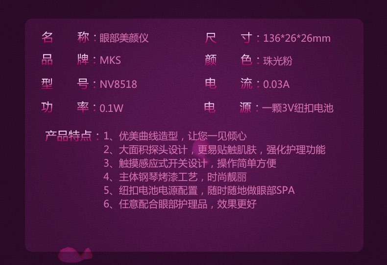 MKS/美克斯MKS眼部按摩仪眼部按摩器护眼仪去皱纹去眼袋黑眼圈NV8518