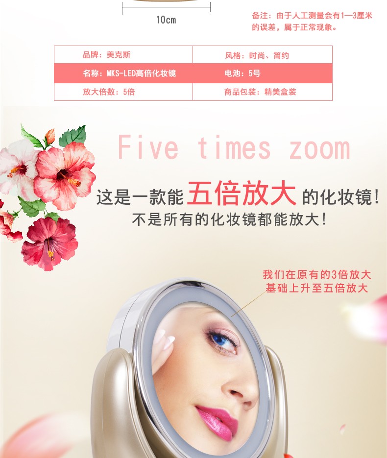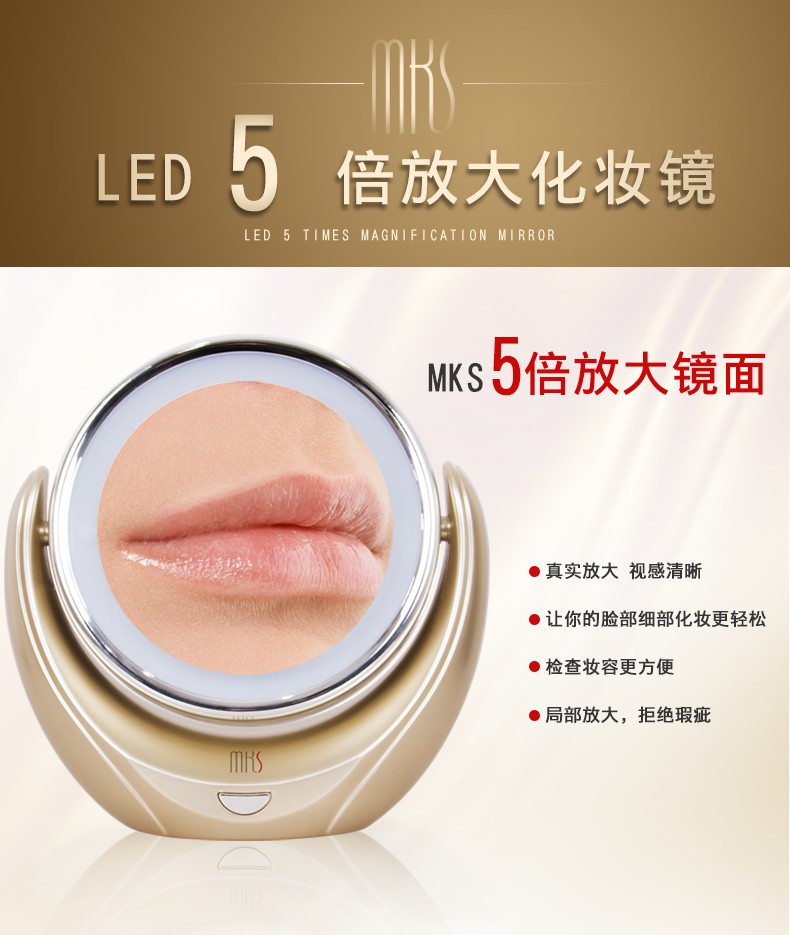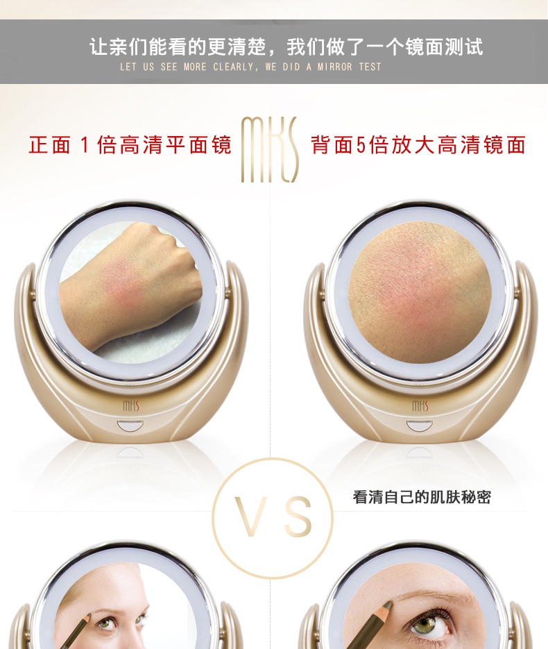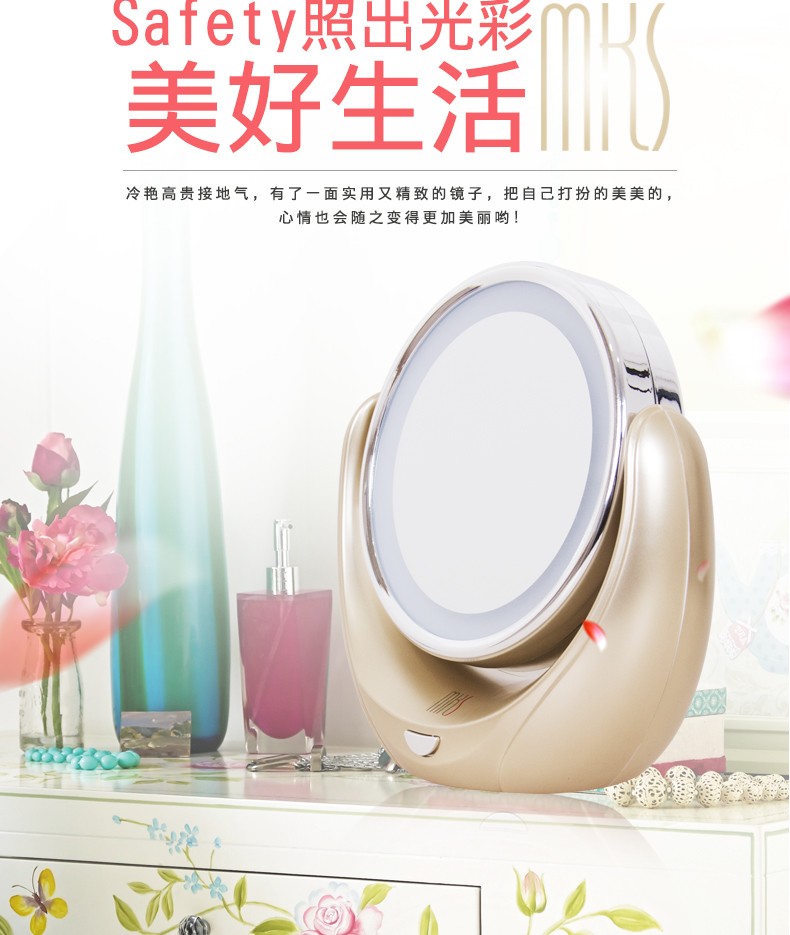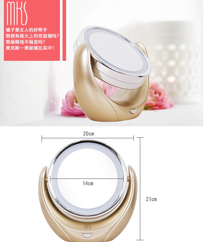 MKS/美克斯LED化妆镜台式灯镜双面梳妆镜带灯镜子5倍高清放大NV8638