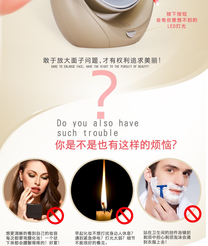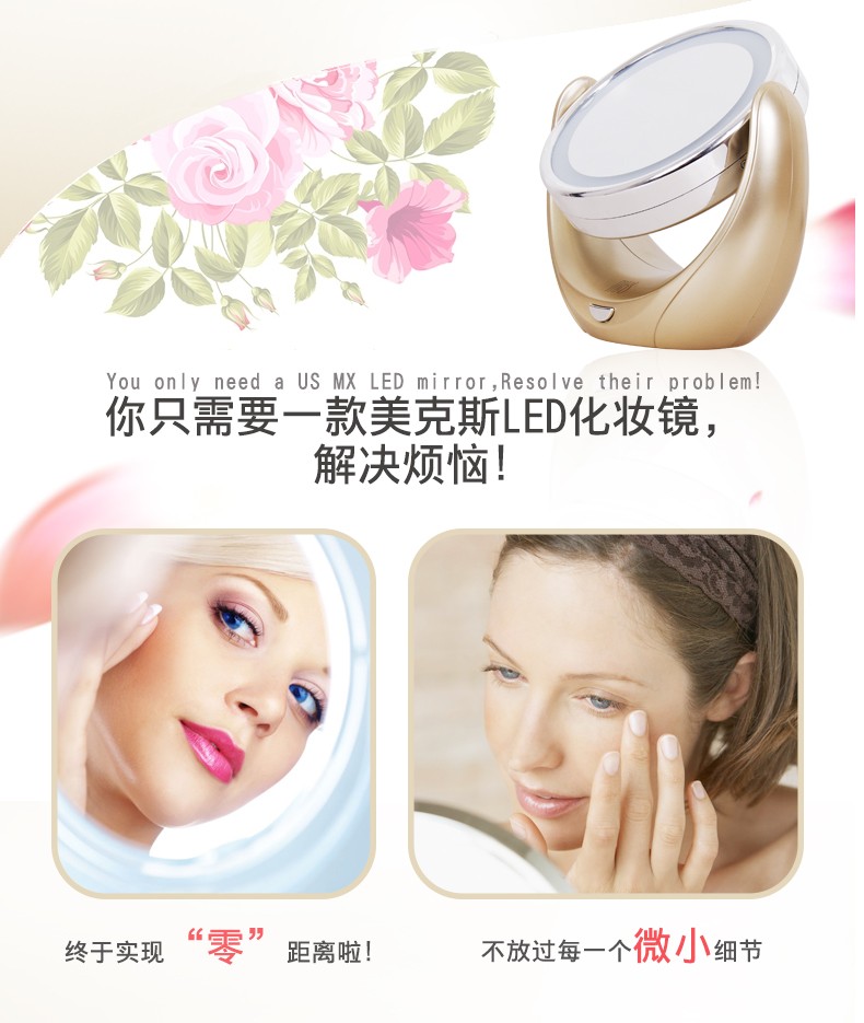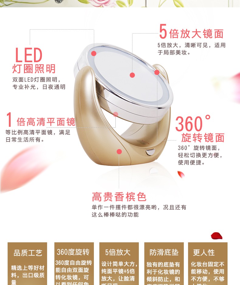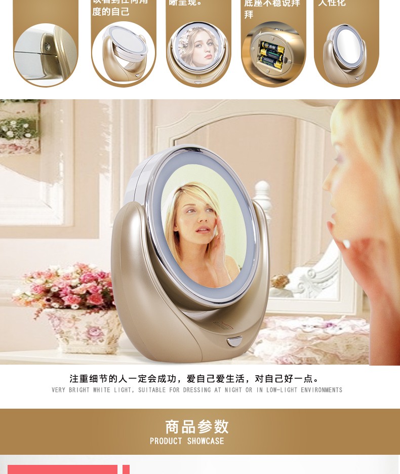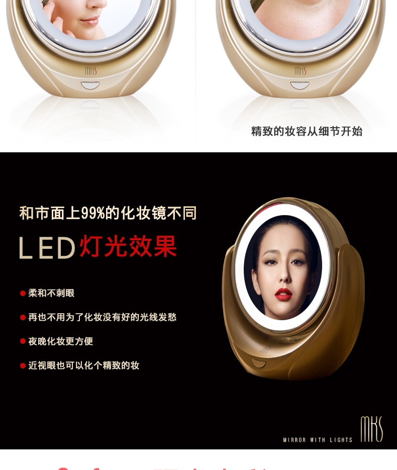 MKS/美克斯LED化妆镜台式灯镜双面梳妆镜带灯镜子5倍高清放大NV8638