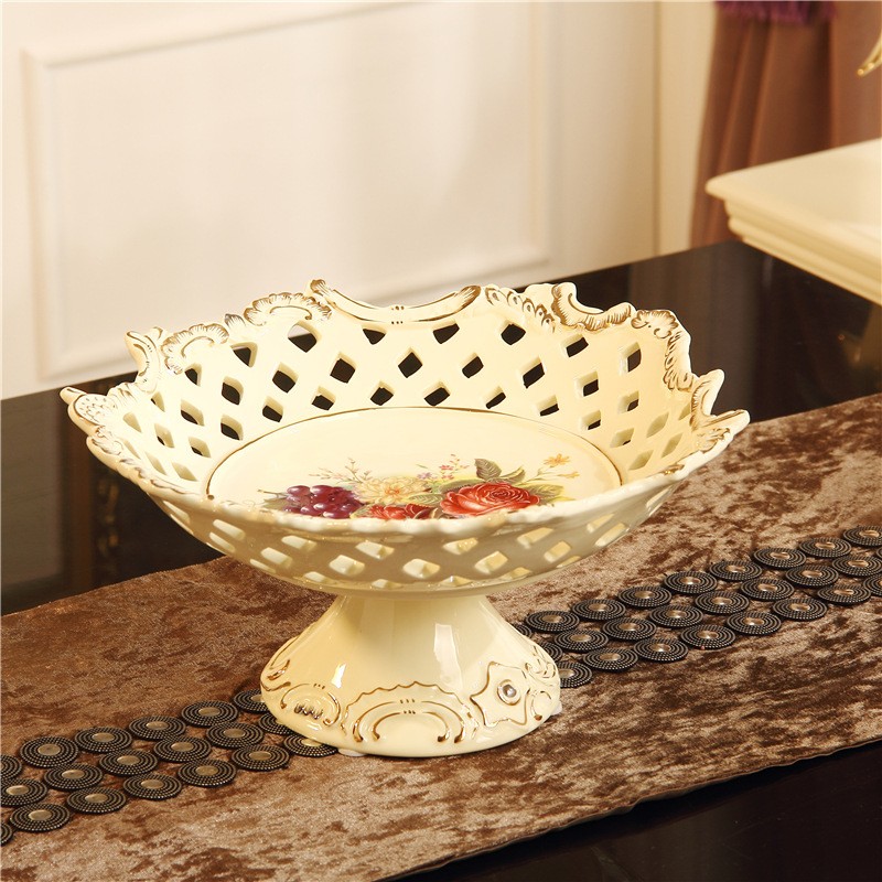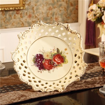 陶瓷象牙瓷水果碗 欧式画金果盘